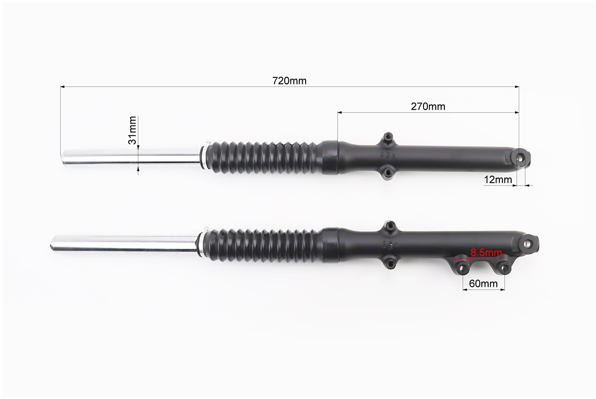 Амортизатор передній (пір’я), лів, правий. к-кт (диск.гальмо), 720мм, чорний