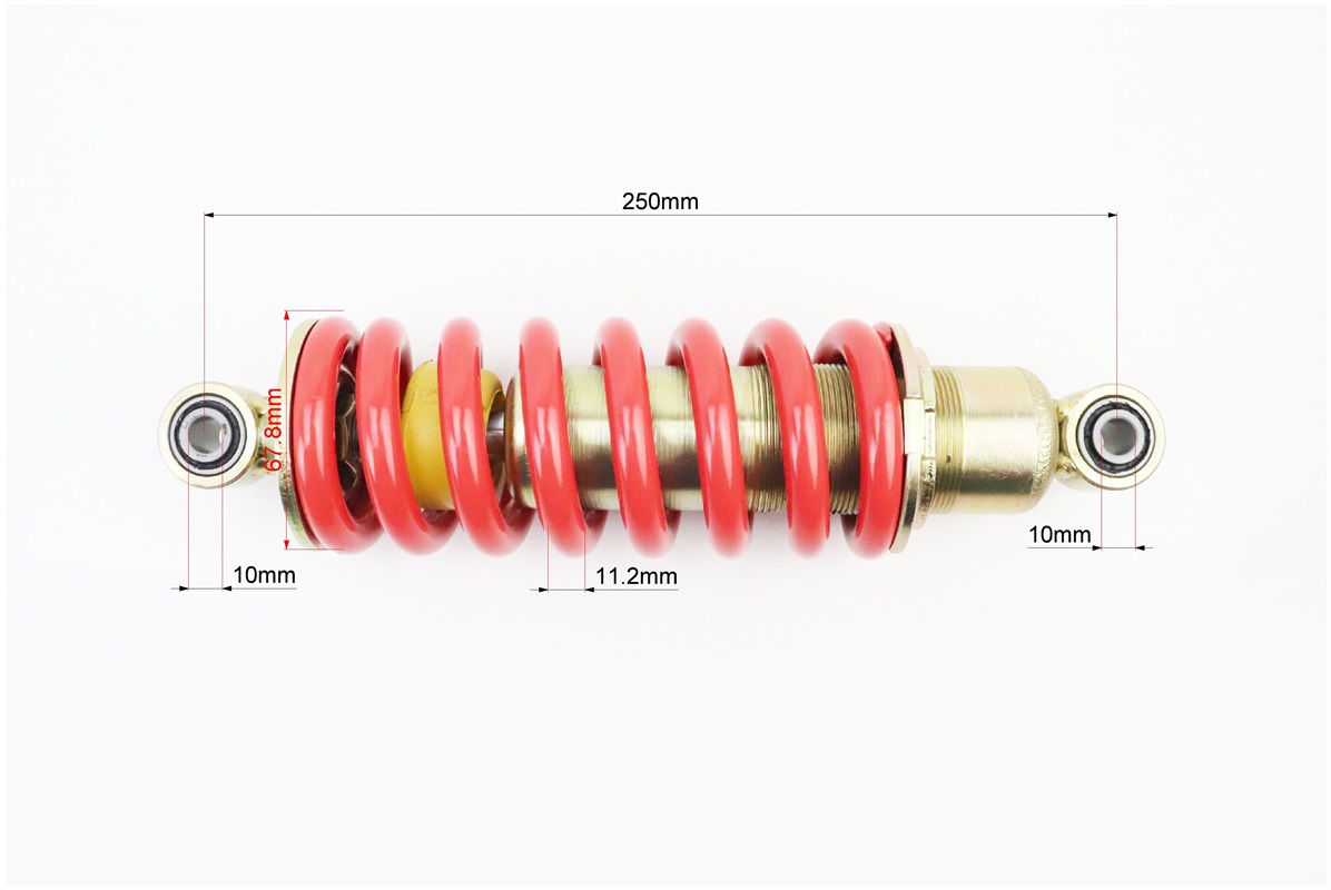 Амортизатор задній МОНО 250мм*d67мм (втулка 10мм / втулка 10мм) регул., червоний