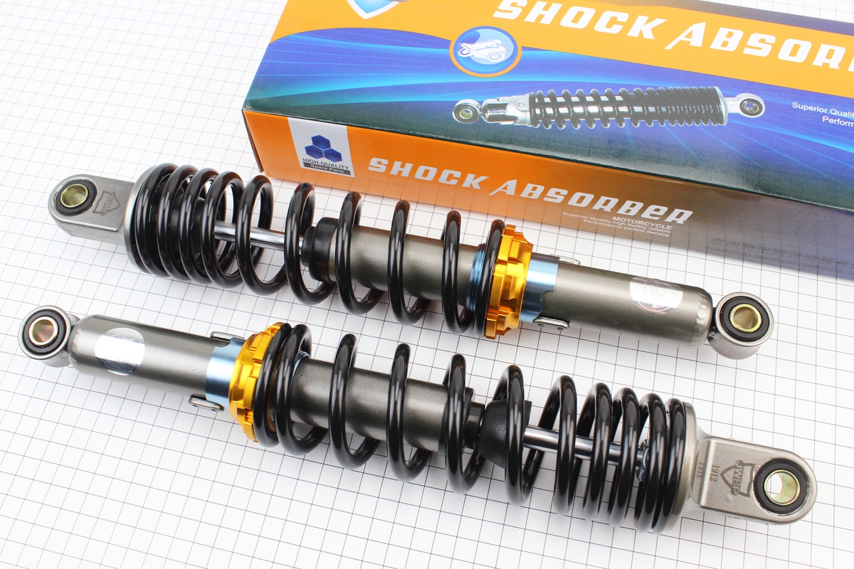 Амортизатор задній JH/CB/CG – 345мм*d60мм (втулка 12мм / втулка 10мм) регул., чорний к-кт 2шт