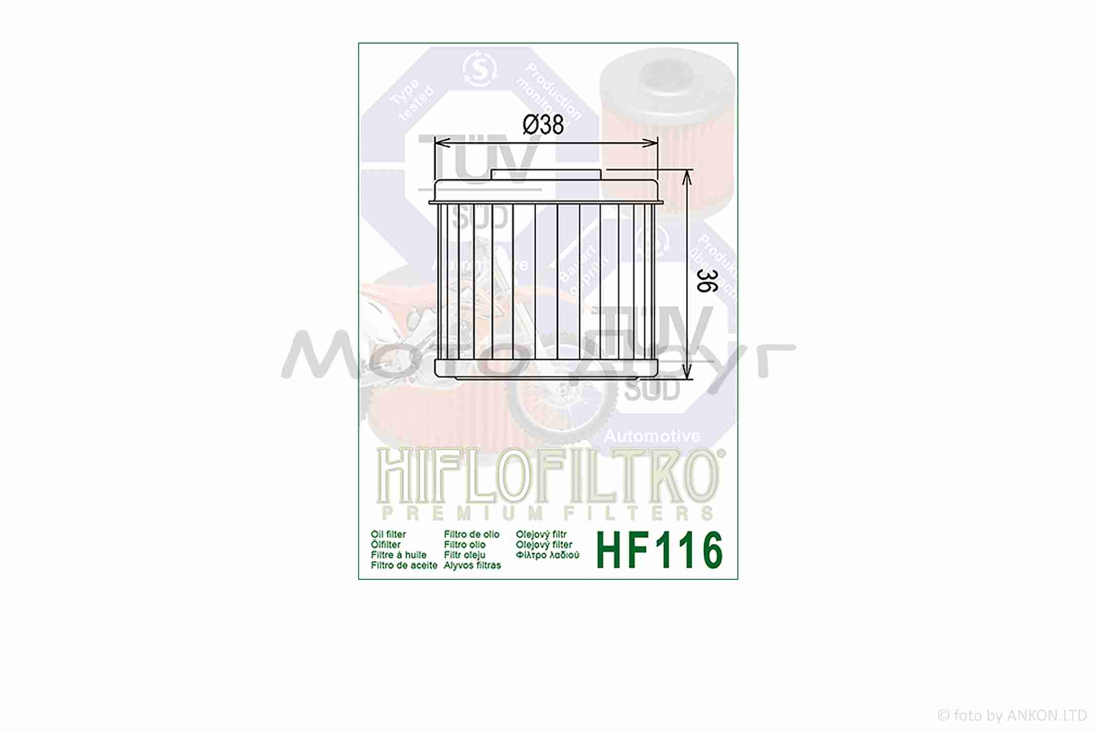 Фільтр масляний мото HF116 D38/H36 “HIFLO” ТАЙЛАНД