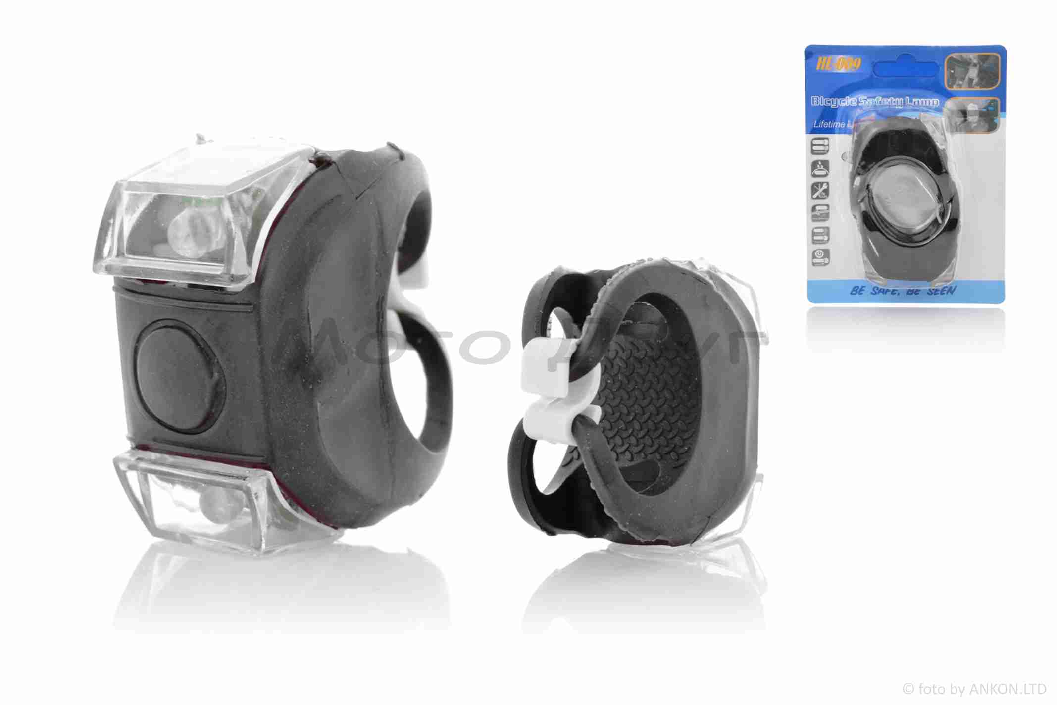 Габарити вело діодні, біле світло, 3 режими, силіконові, 2шт (чорний корпус) #DEN-006