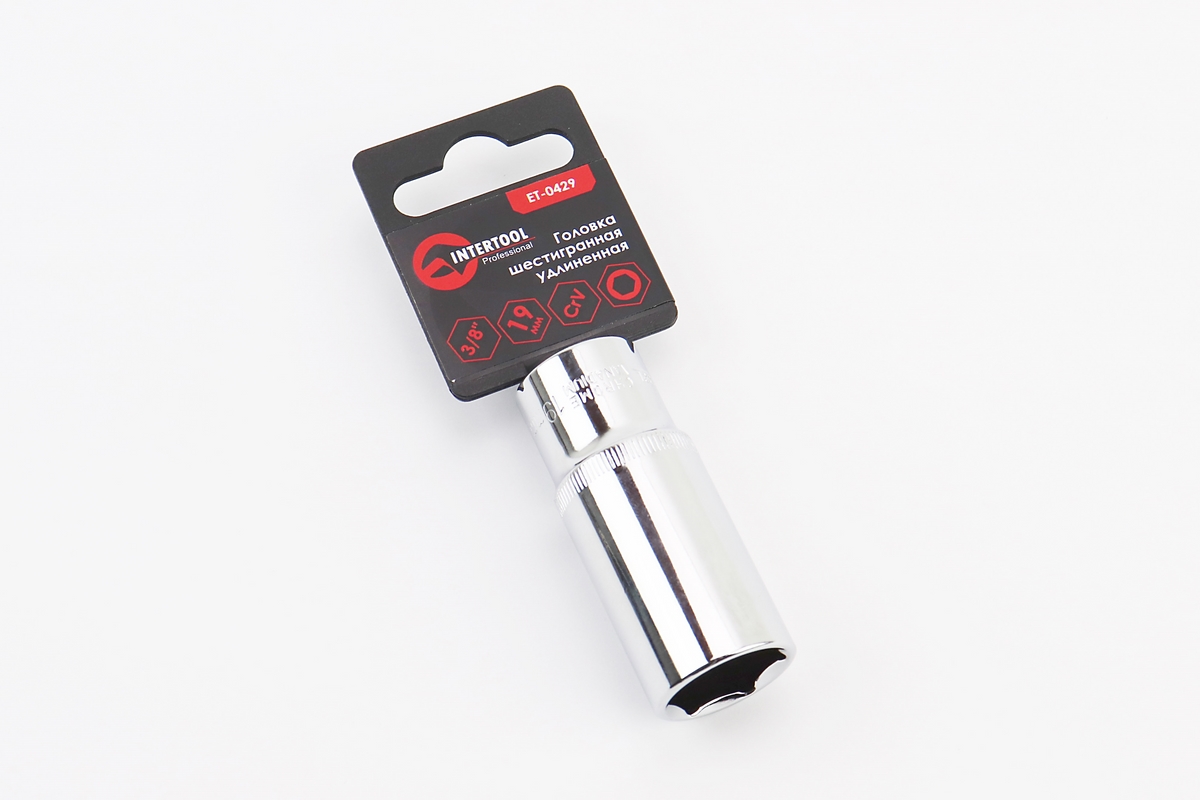 Головка торцева 6-гранна подовжена 3/8″ 19мм CrV ET-0429