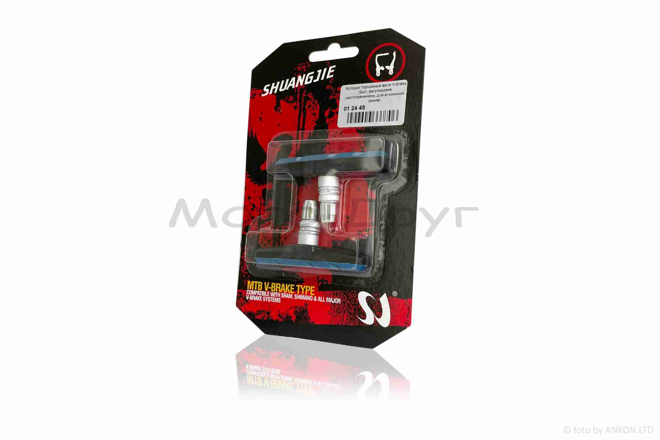 Колодки гальмівні вело V-brake (2шт, регулювання шестигранником, для алюмінію, сині)
