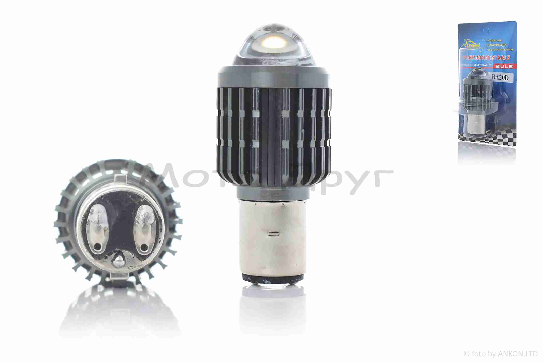 Лампа фари діодна H6 (BA20D) 12V 35/35W 2 діода білий/жовтий лінза “LIPAI”