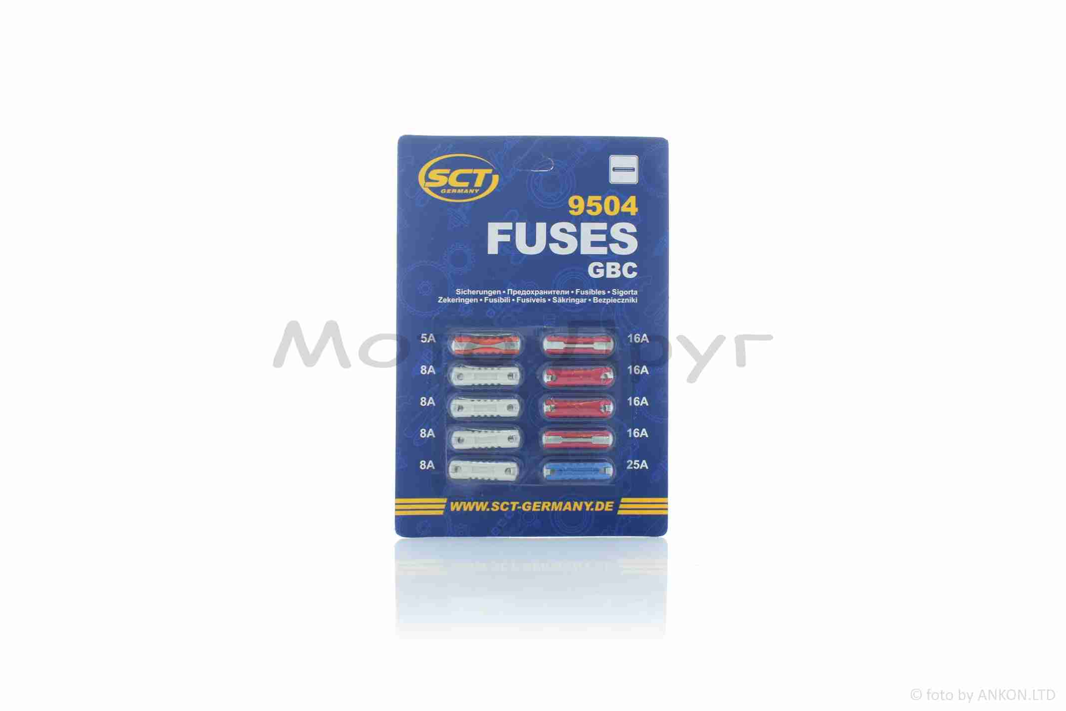 Набір запобіжників пальчикових 5/8/16/20/25A 10шт “SCT” НІМЕЧЧИНА (FUSES GBC) #9504
