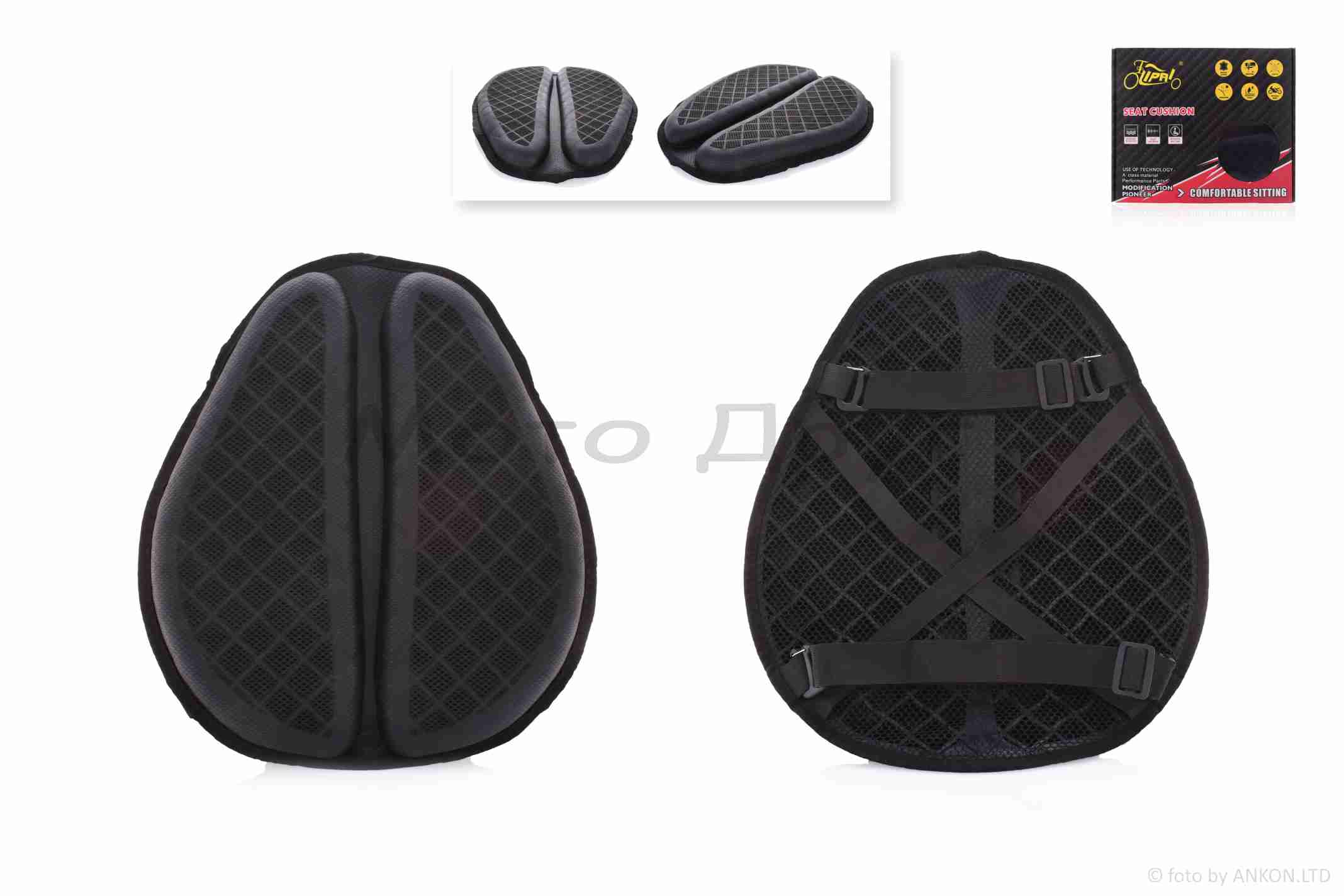 Подушка сидіння мото 42*35см “LIPAI” (#1929, чорна, силікон, дихаюча)