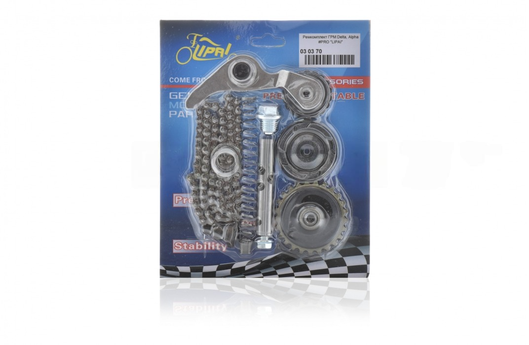 Ремкомплект ГРМ Delta, Alpha 3 ролика, балансир, пружина, рычаг, цепь 82L “LIPAI