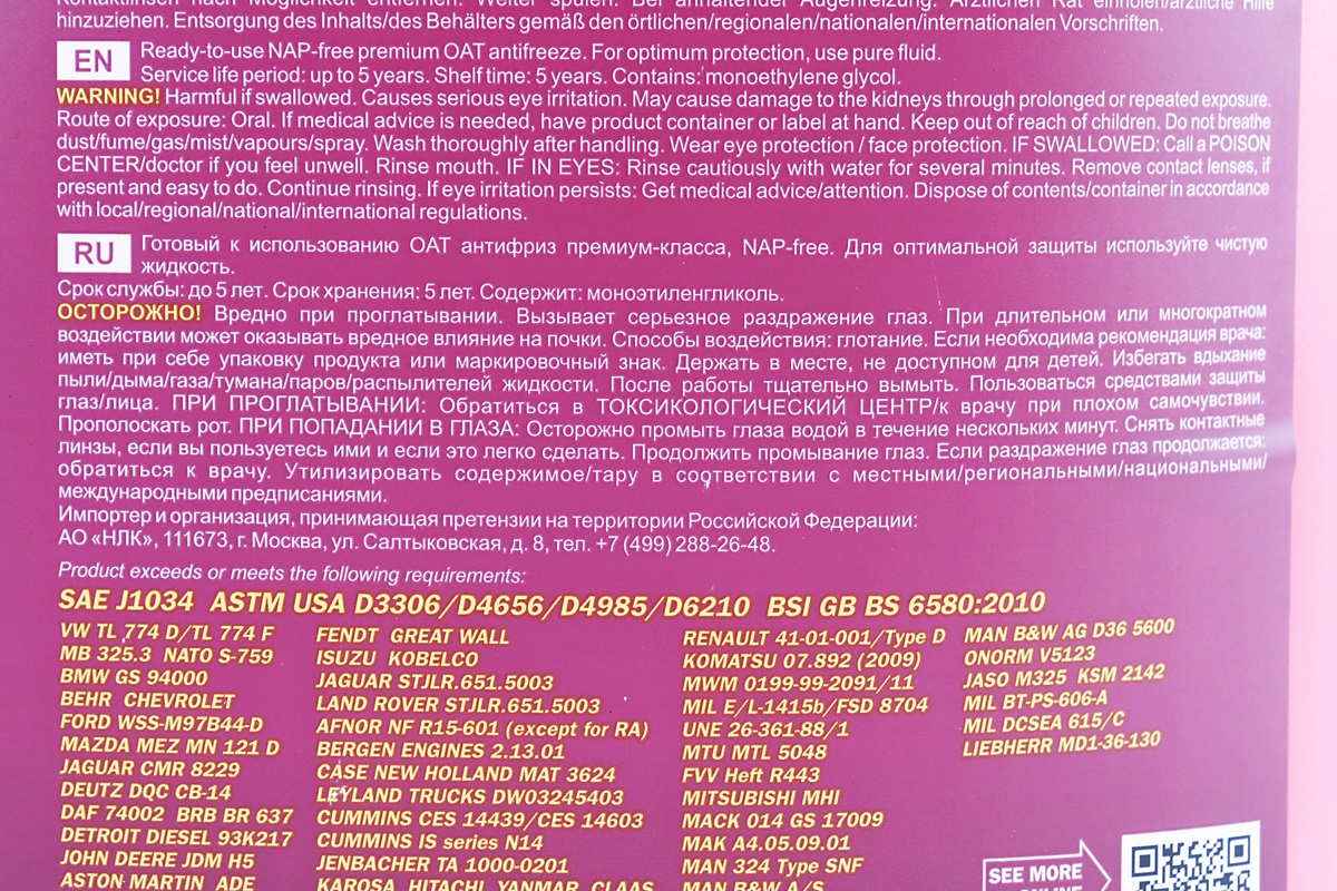 Рідина охолоджуюча -40°C “АНТИФРИЗ AF12”, червона 5L