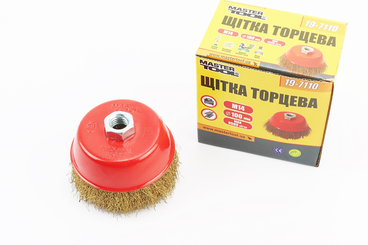 Щітка торцева М14 D-100мм з латунованого рифленого дроту 19-7110