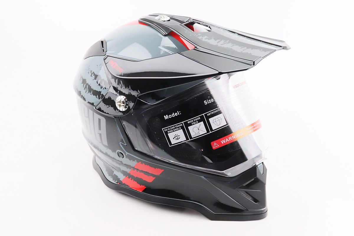 Шолом кросовий/ендуро/АТV зі склом BLD-819-7 L (59-60см), ЧОРНИЙ/СІРО-ЧЕРВОНИЙ