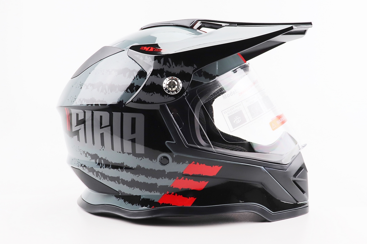 Шолом кросовий/ендуро/АТV зі склом BLD-819-7 М (57-58см), ЧОРНИЙ/СІРО-ЧЕРВОНИЙ