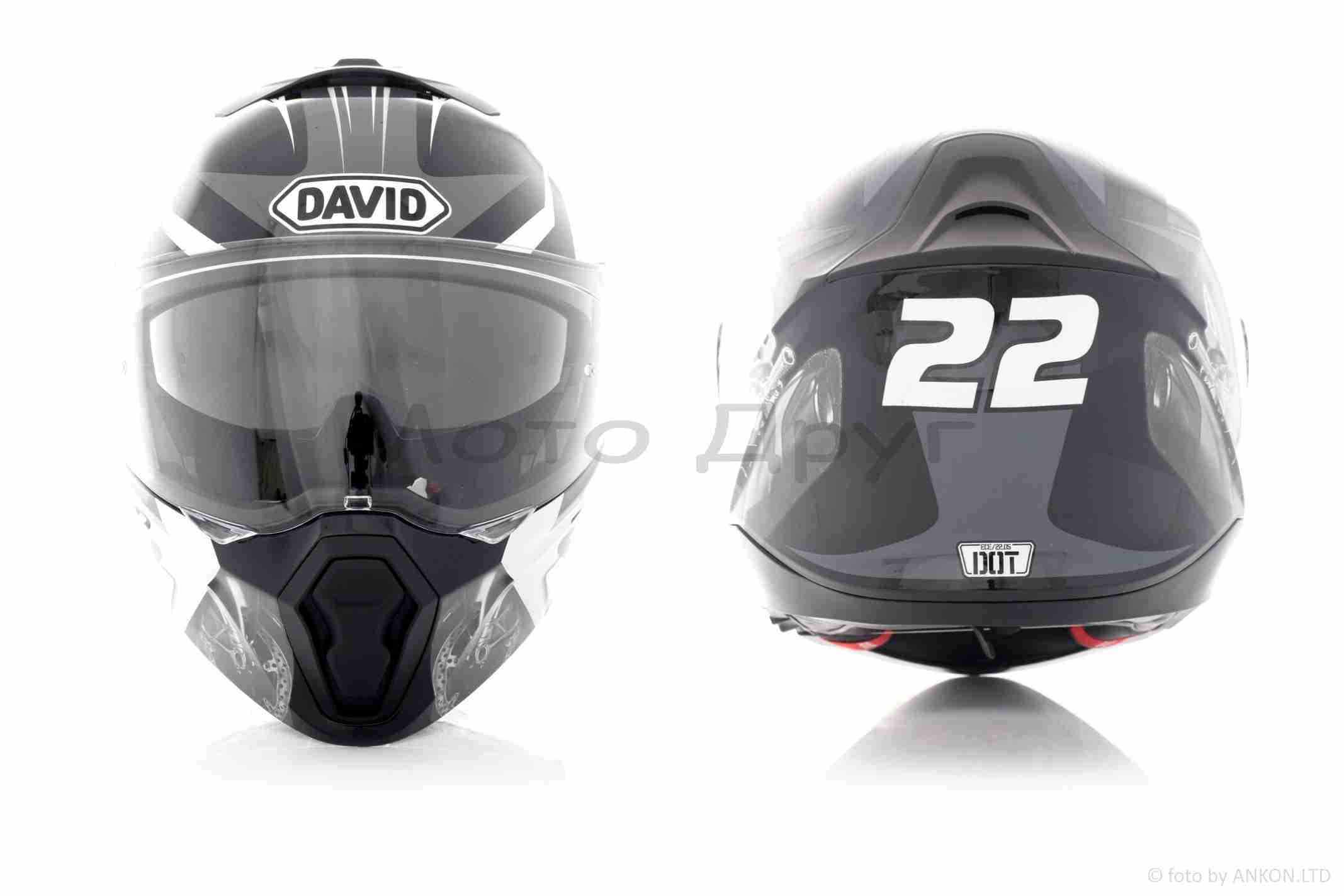 Шолом трансформер “DAVID” (#D809A, чорний глянсовий, L, окуляри, ABS)