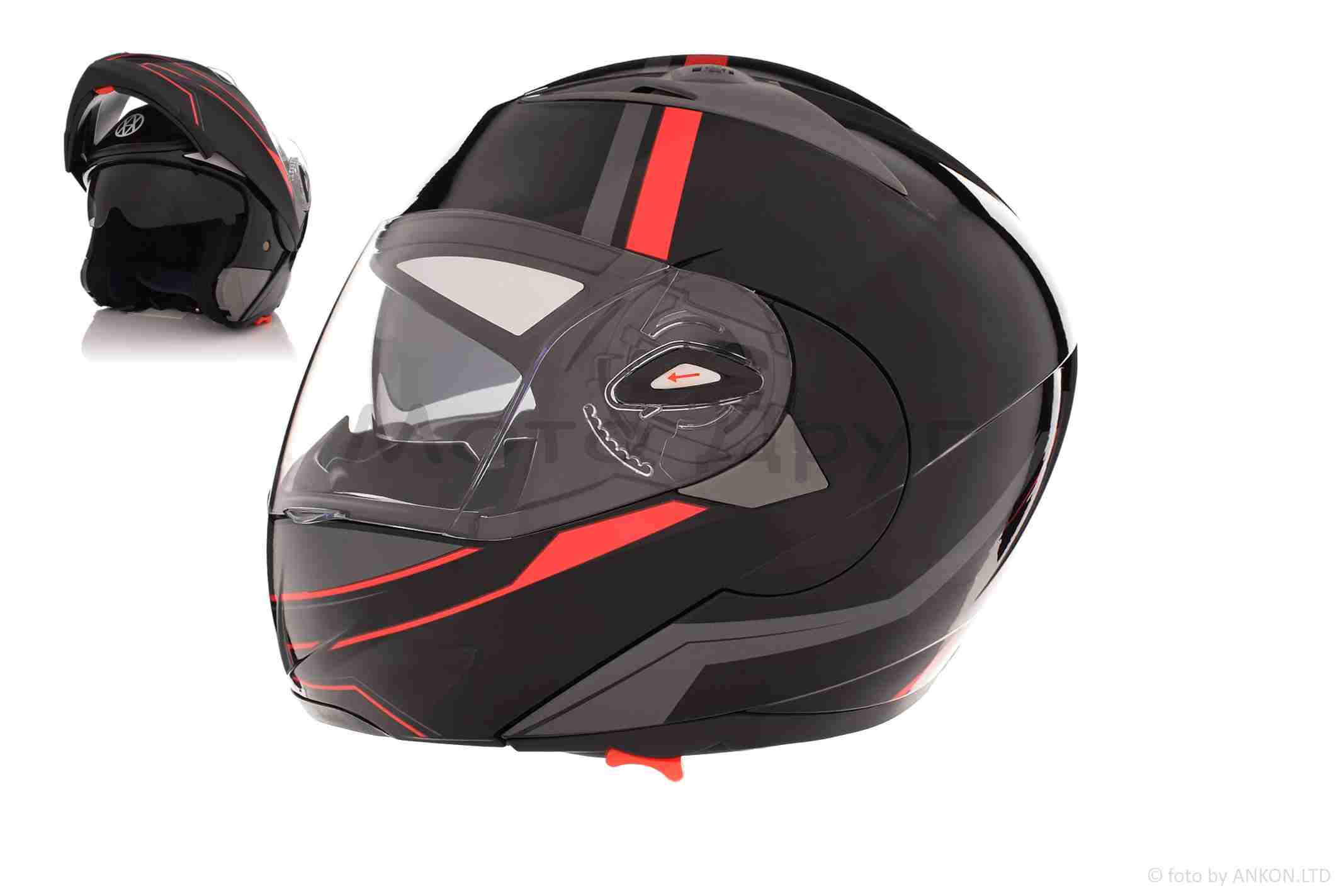 Шолом трансформер “IBK” (#965A габарит 3 режими, чорно-червоний матовий, L, окуляри)