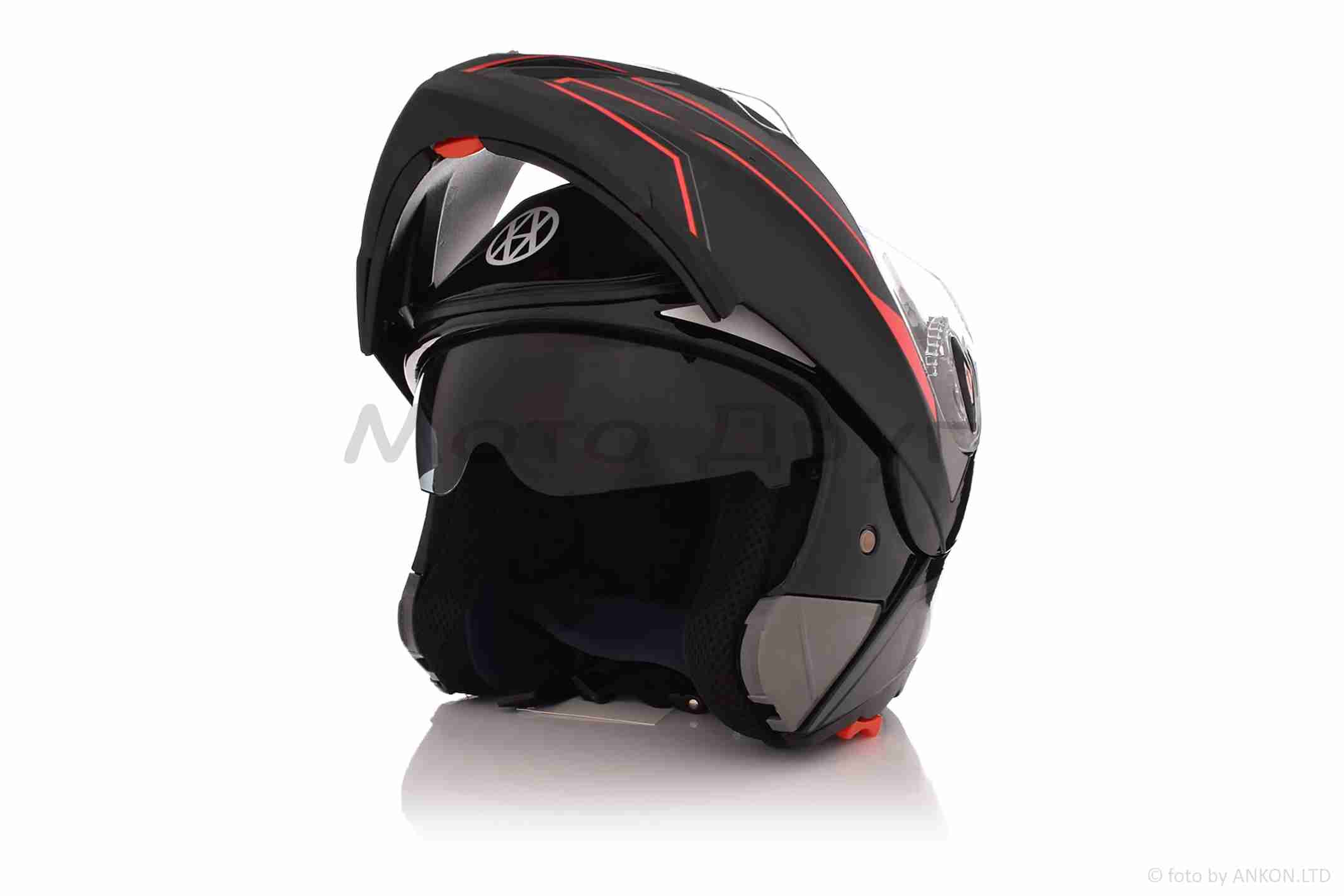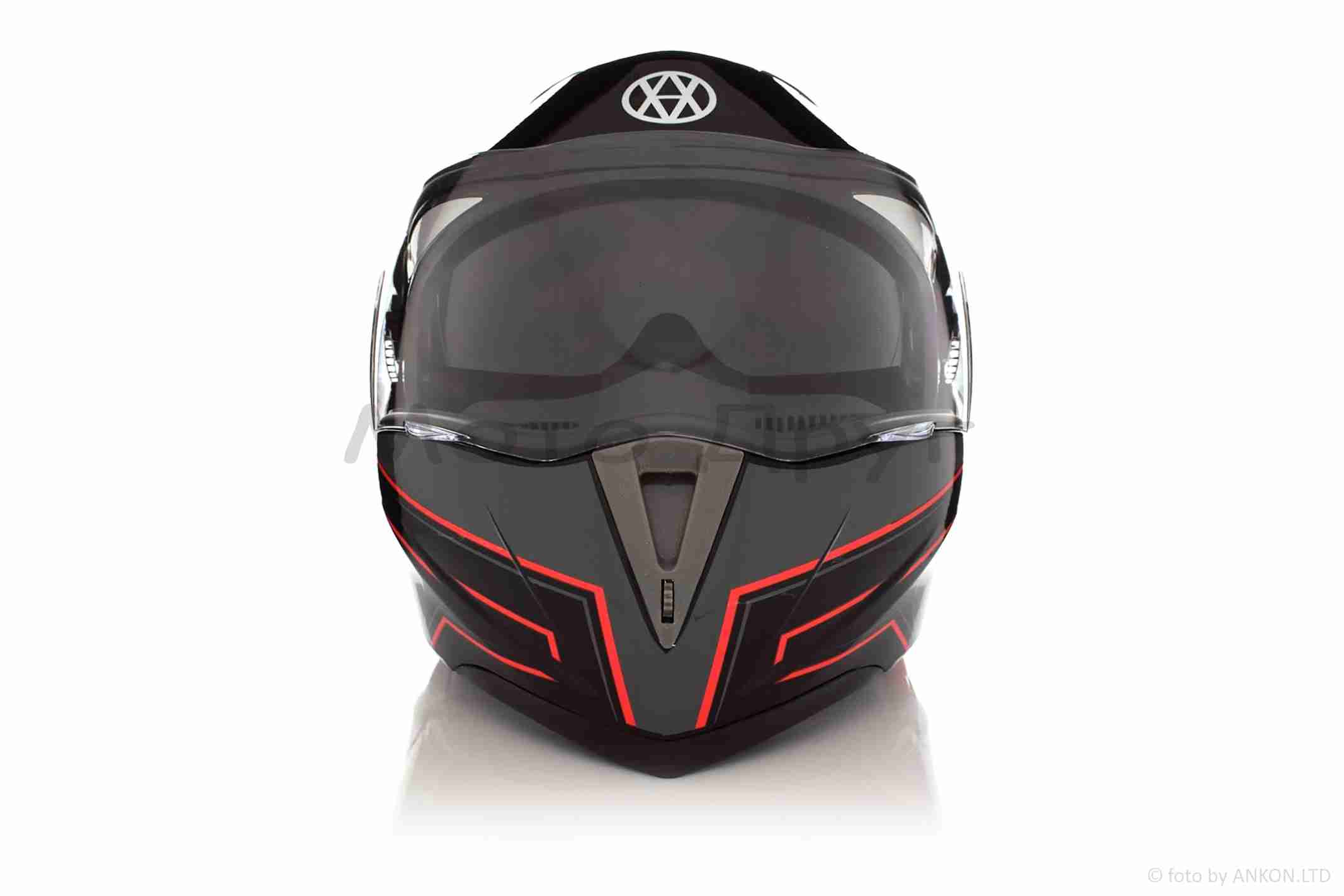 Шолом трансформер “VLAND” #158, чорно-червоний, окуляри, L