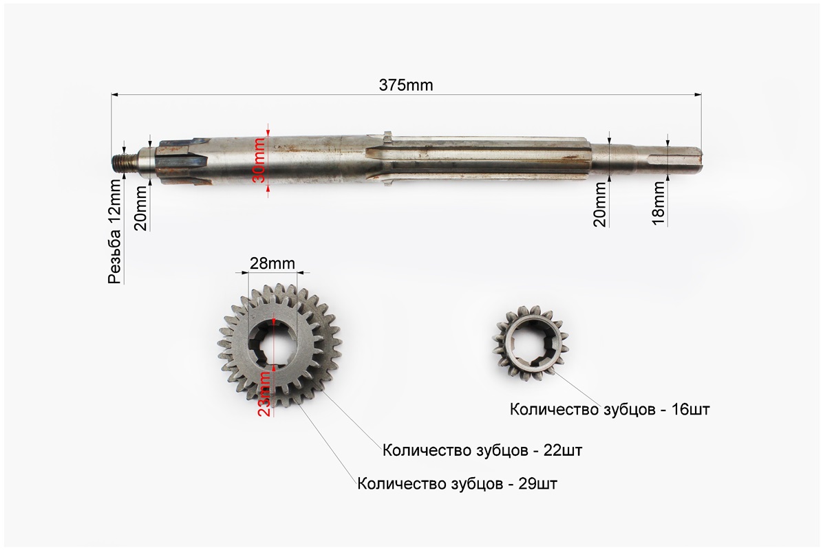 Вал КПП первинний (з валом відбора пот.) 375mm+шестерня Z-16+шестерня Z-22х29 101-2