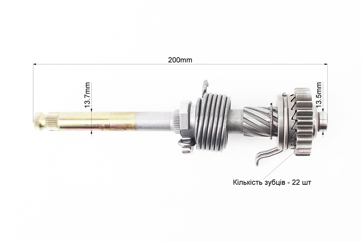 Вал заводної лапки у зборі (шестерня, пружина) 200мм, тип. 2 (косі зубці)