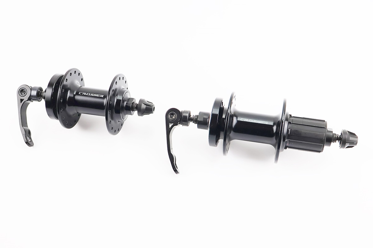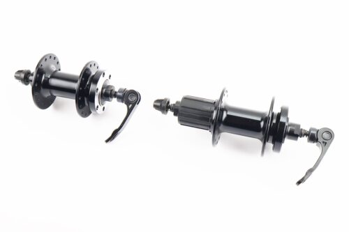 Втулки задня+передня MTB алюмінієва 14Gx32H під касету 8зр, Disk-brake, 2 пром-підшипники 6000 2RS, кріп. ексцентрик, чорна