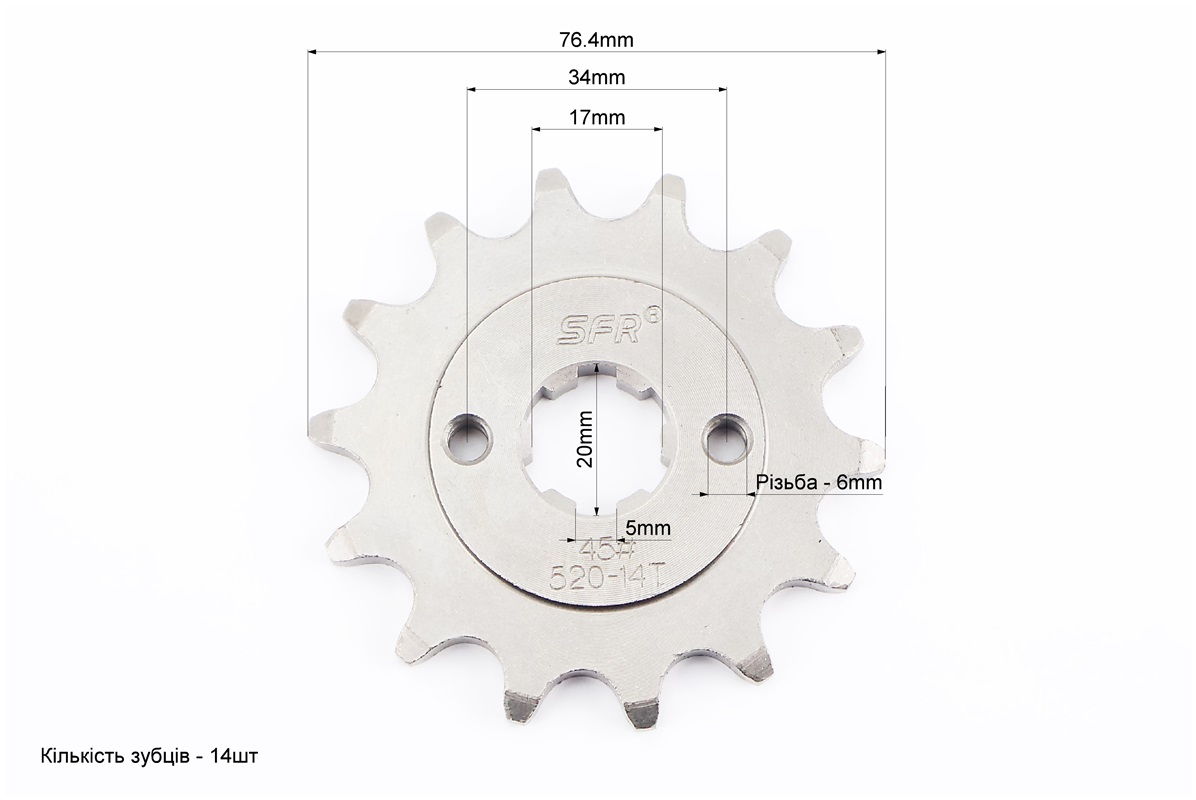 Зірка передня CG/CB-520H-14T (шліц 5мм) Loncin LX250GY-3/Scrambler 250