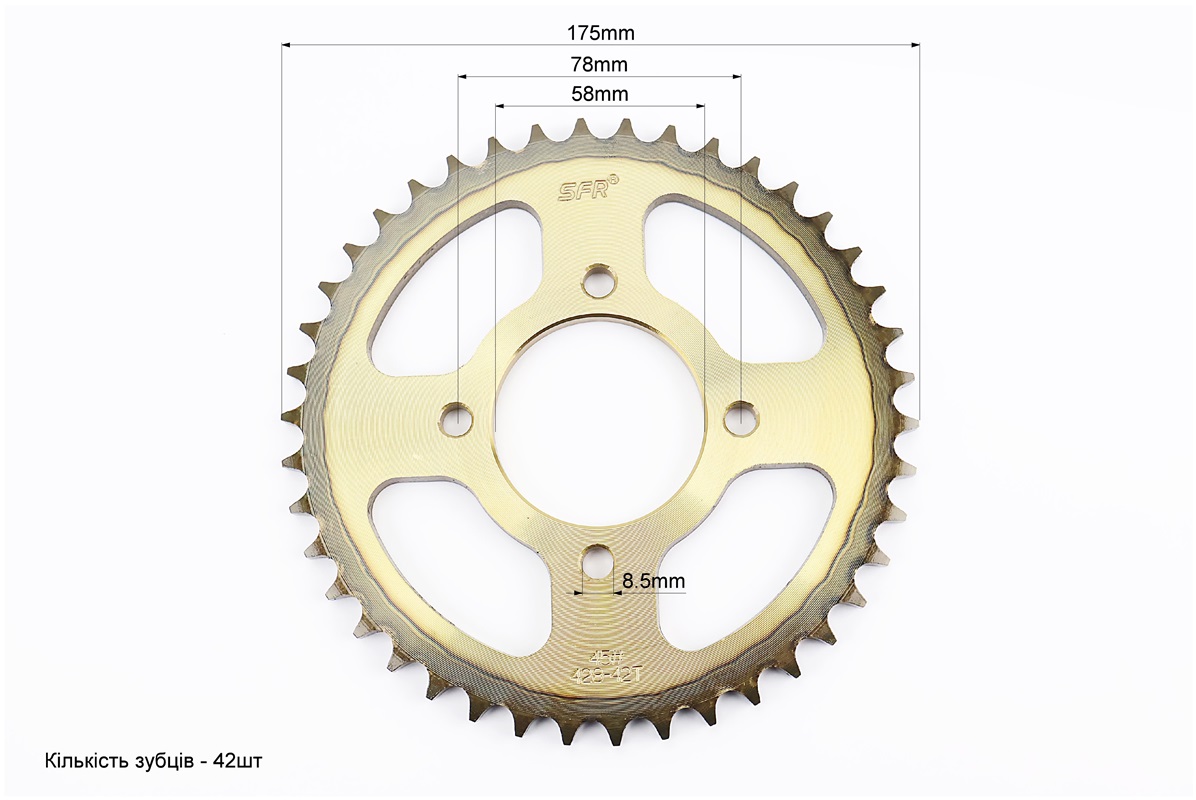 Зірки, ланцюг к-кт ZS125J-428H-116L+42T+15T “гартована” (у коробці)