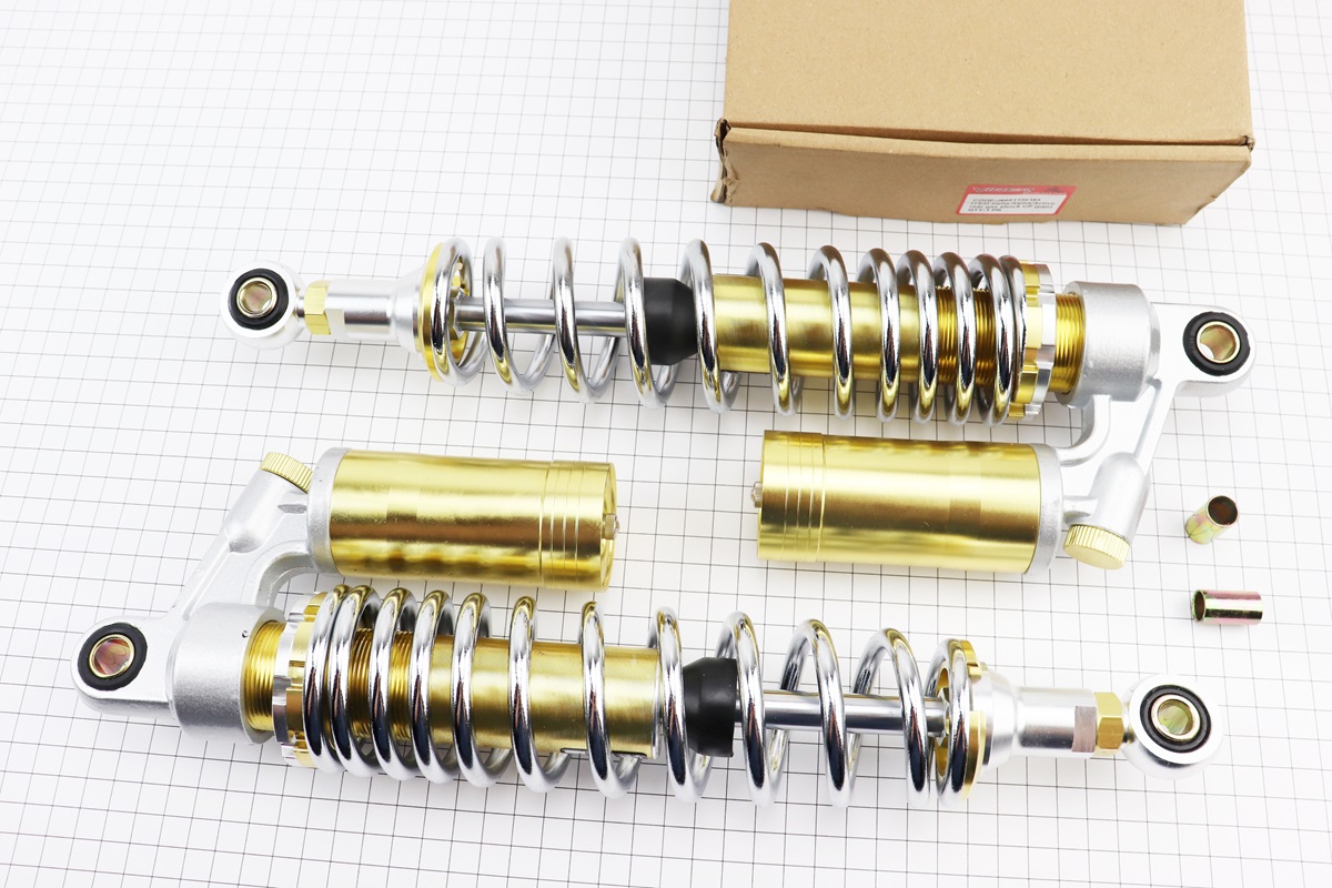 Амортизатор задний JH/CB/CG – 340мм*d60мм (втулка 12мм / втулка 10;12мм) газовый регулир., хром к-кт 2шт