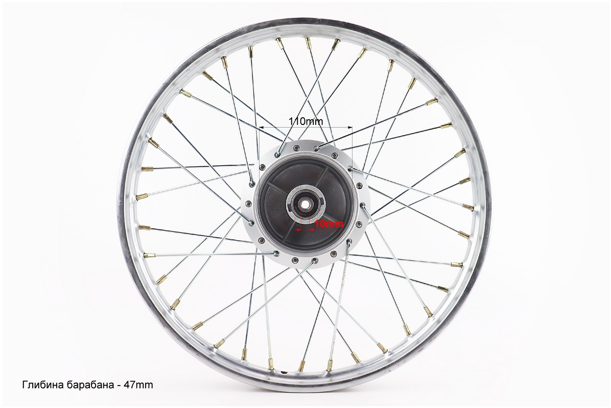 Диск передний спицованный (колесо) 1,2-17″ DELTA, хром (ось 10мм)