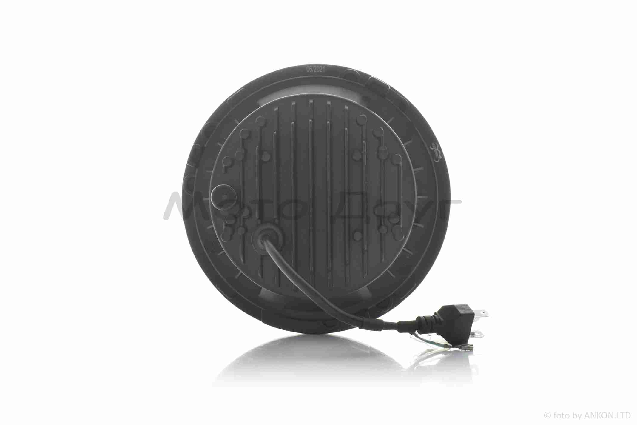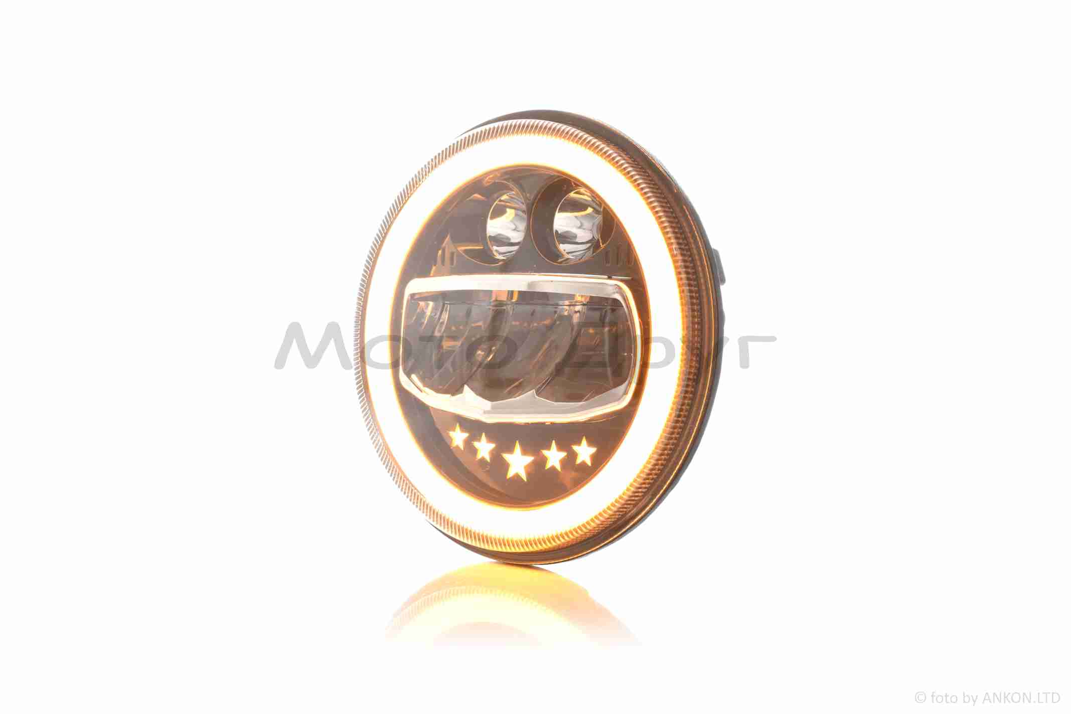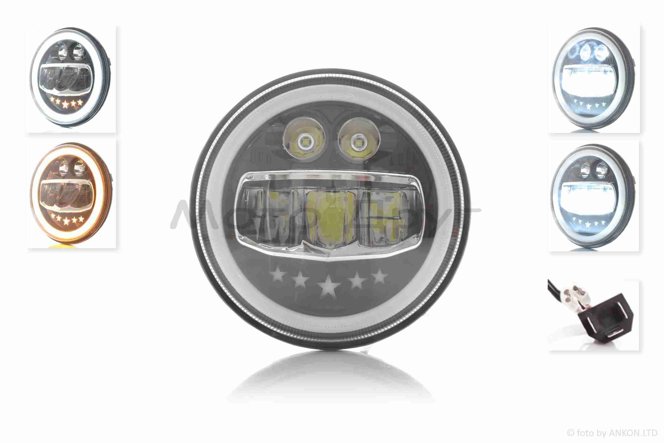 Фара мото диодная, круглая, D177, H4, 2 габарита (белый/желтый) #C55-3S1