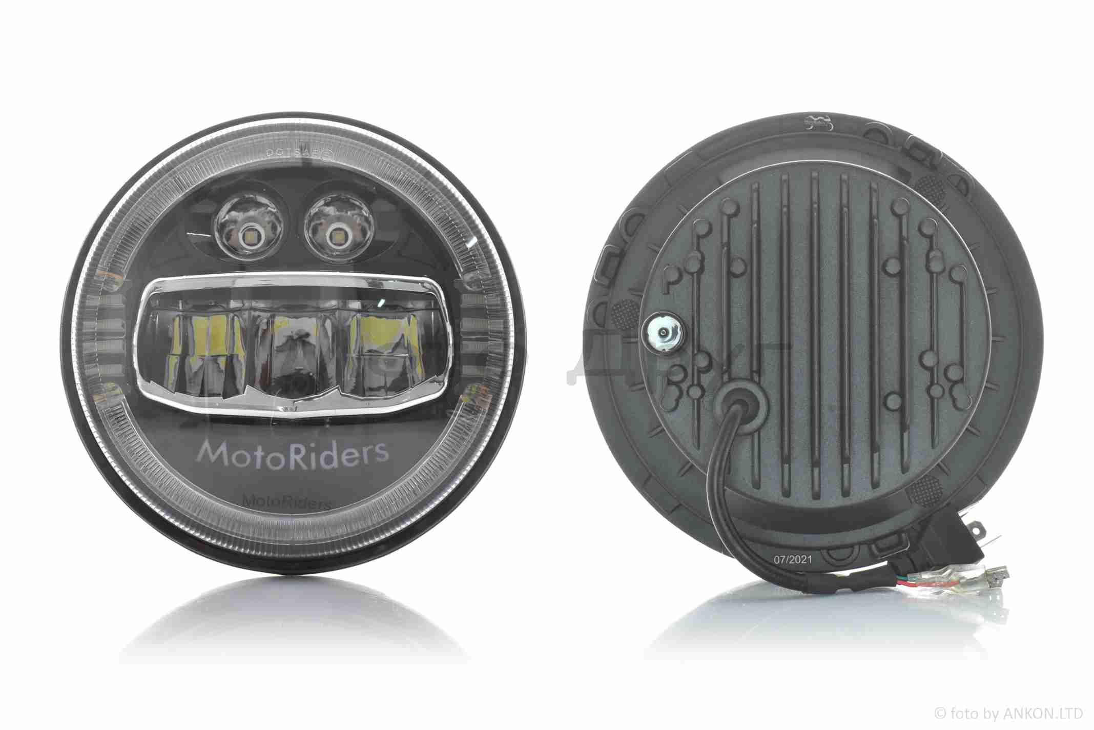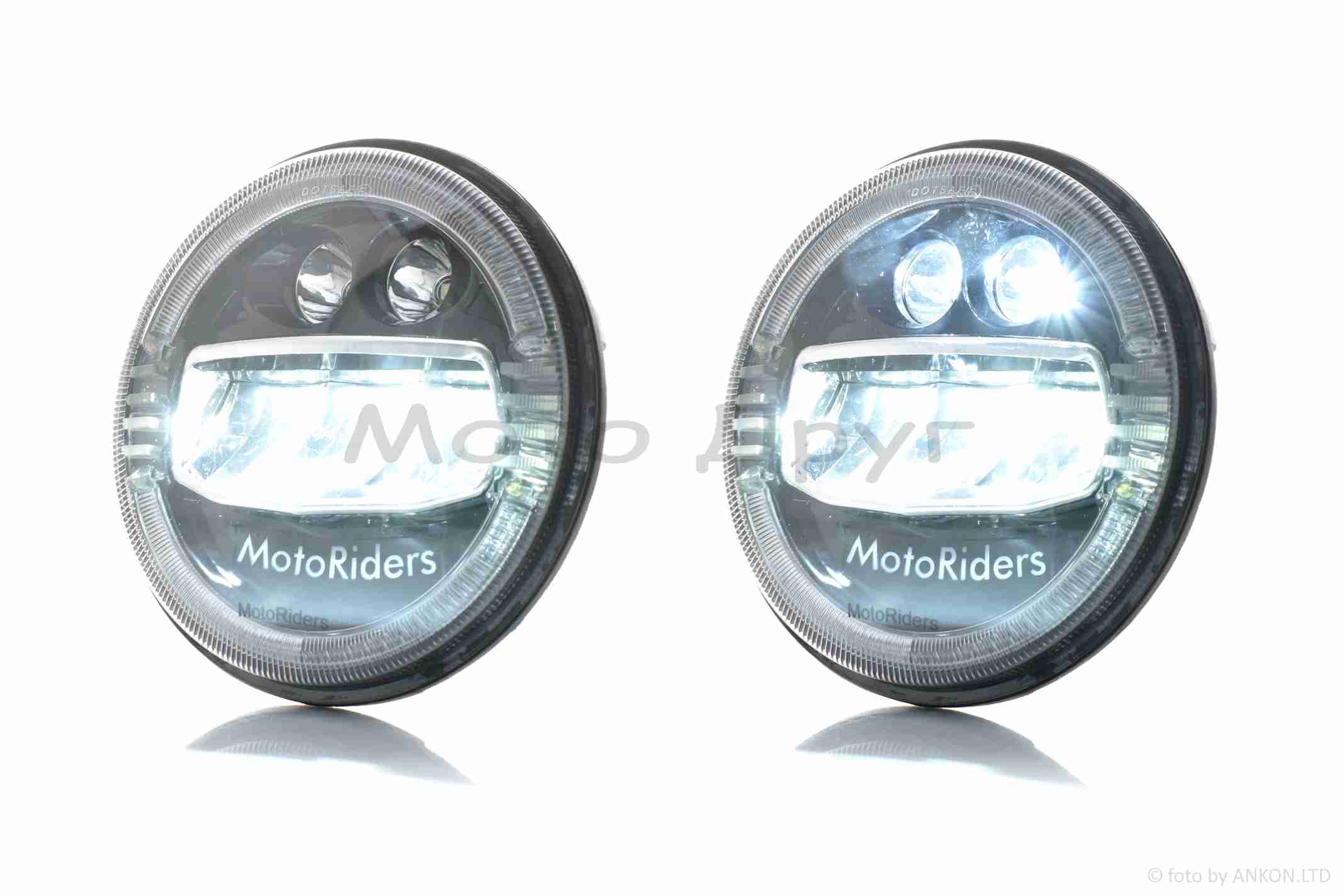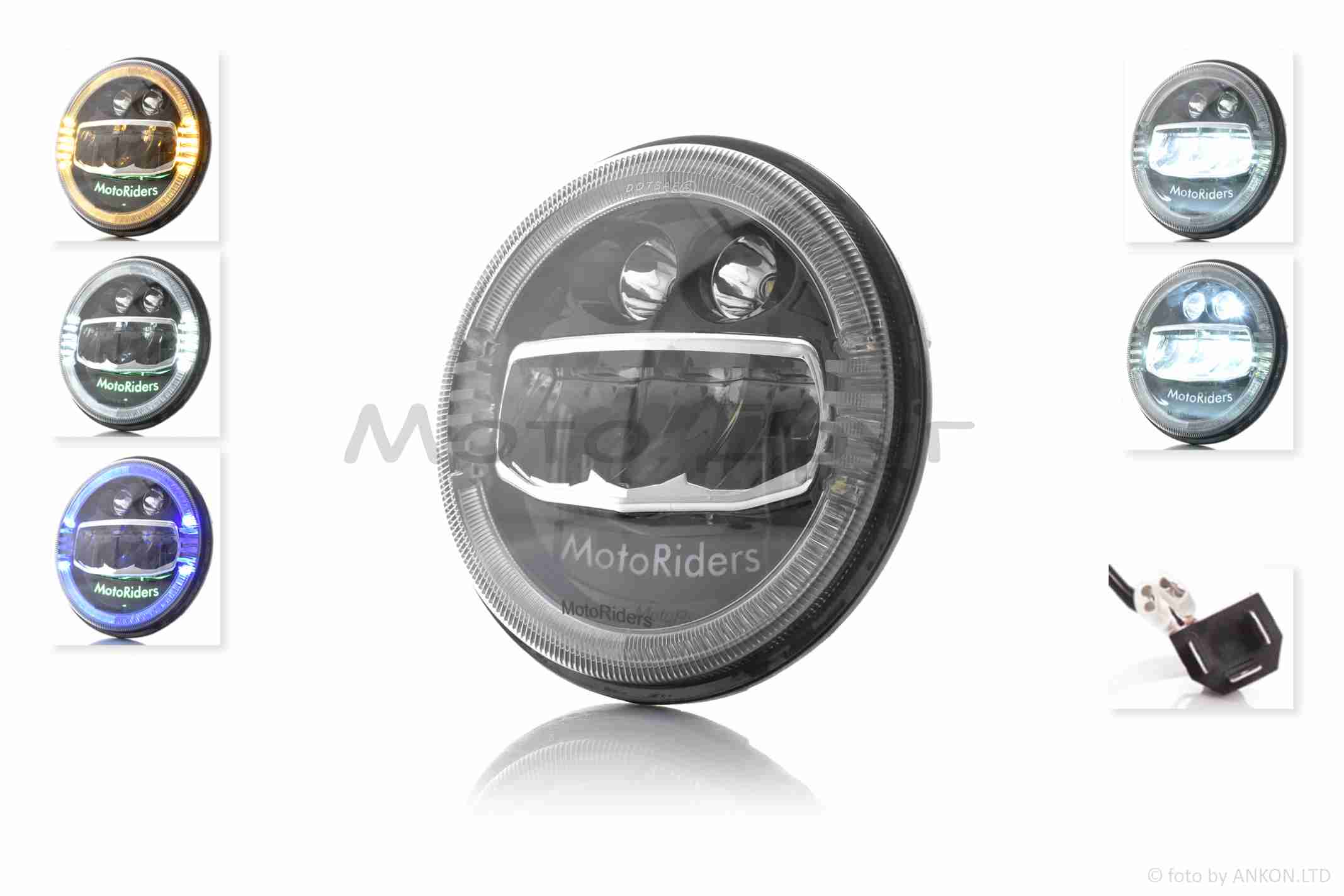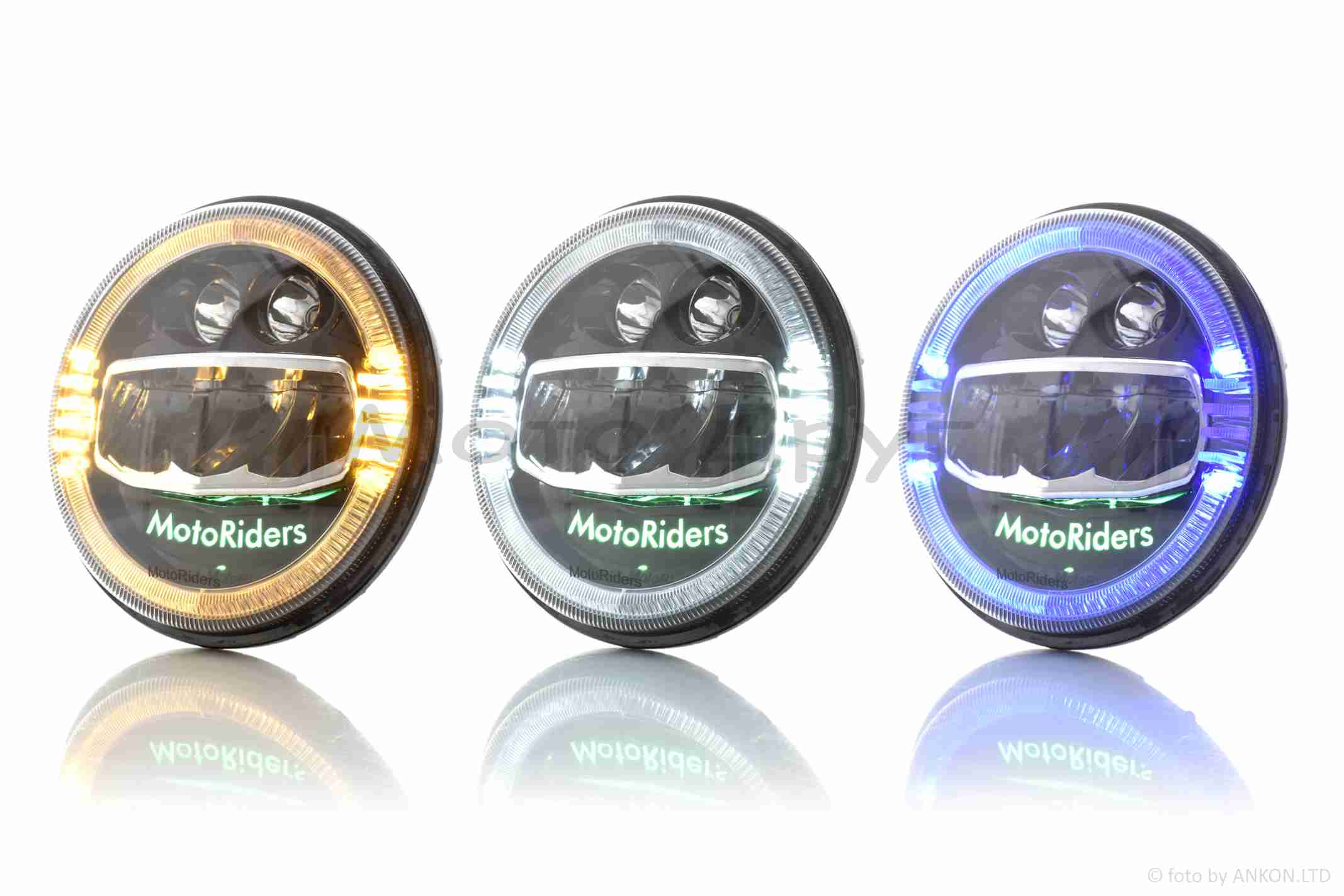 Фара мото диодная, круглая, D178, H4, 3 габарита (белый/желтый/синий) #C88-1S1