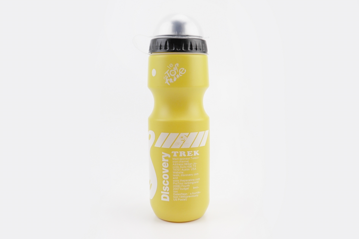 Фляга пластиковая 550мл, с защитной крышкой, жёлтая с рисунком бело-чёрным “Trek”