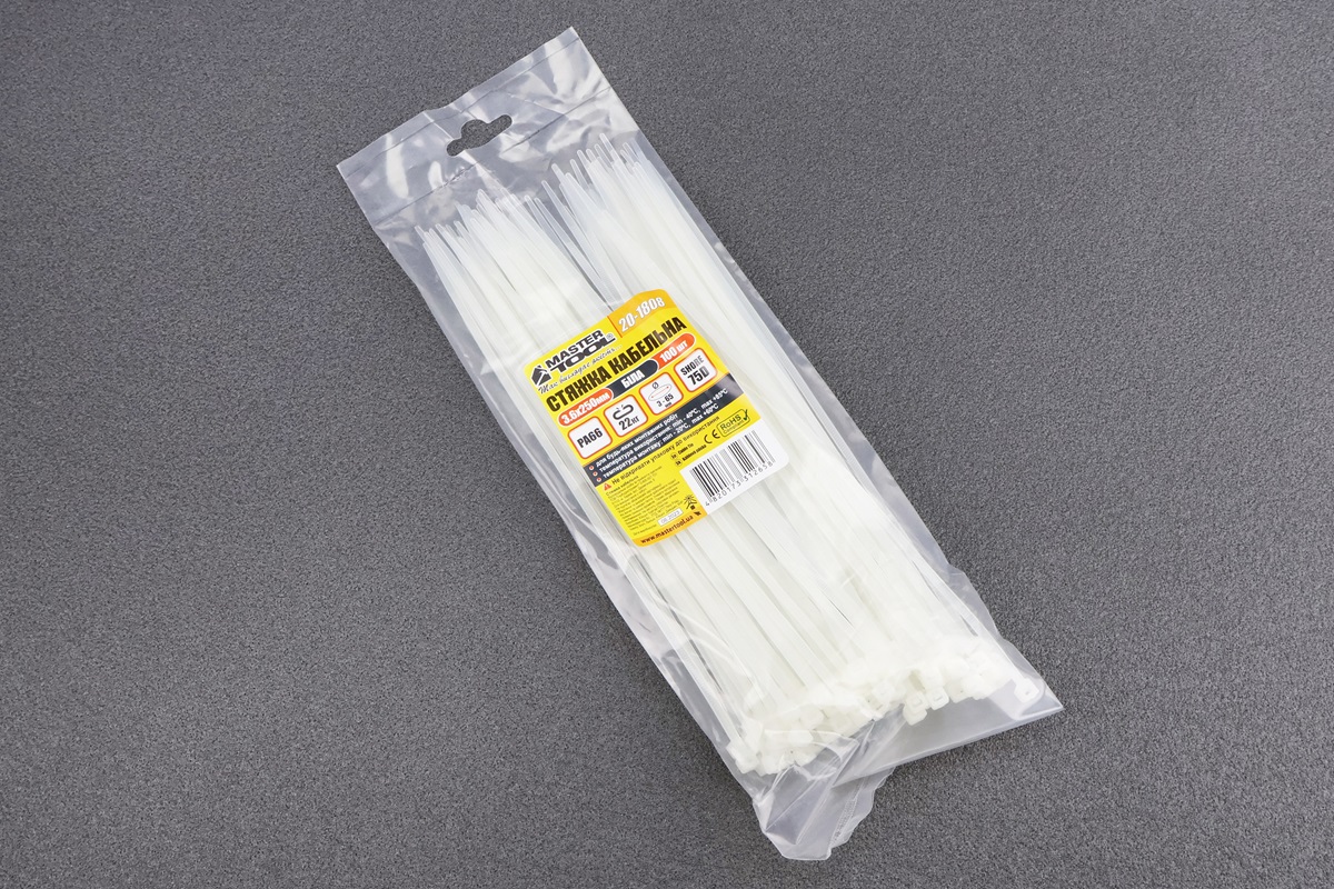 Хомут-стяжка пластиковый 3,6×250мм к-кт 100шт, белый 20-1808