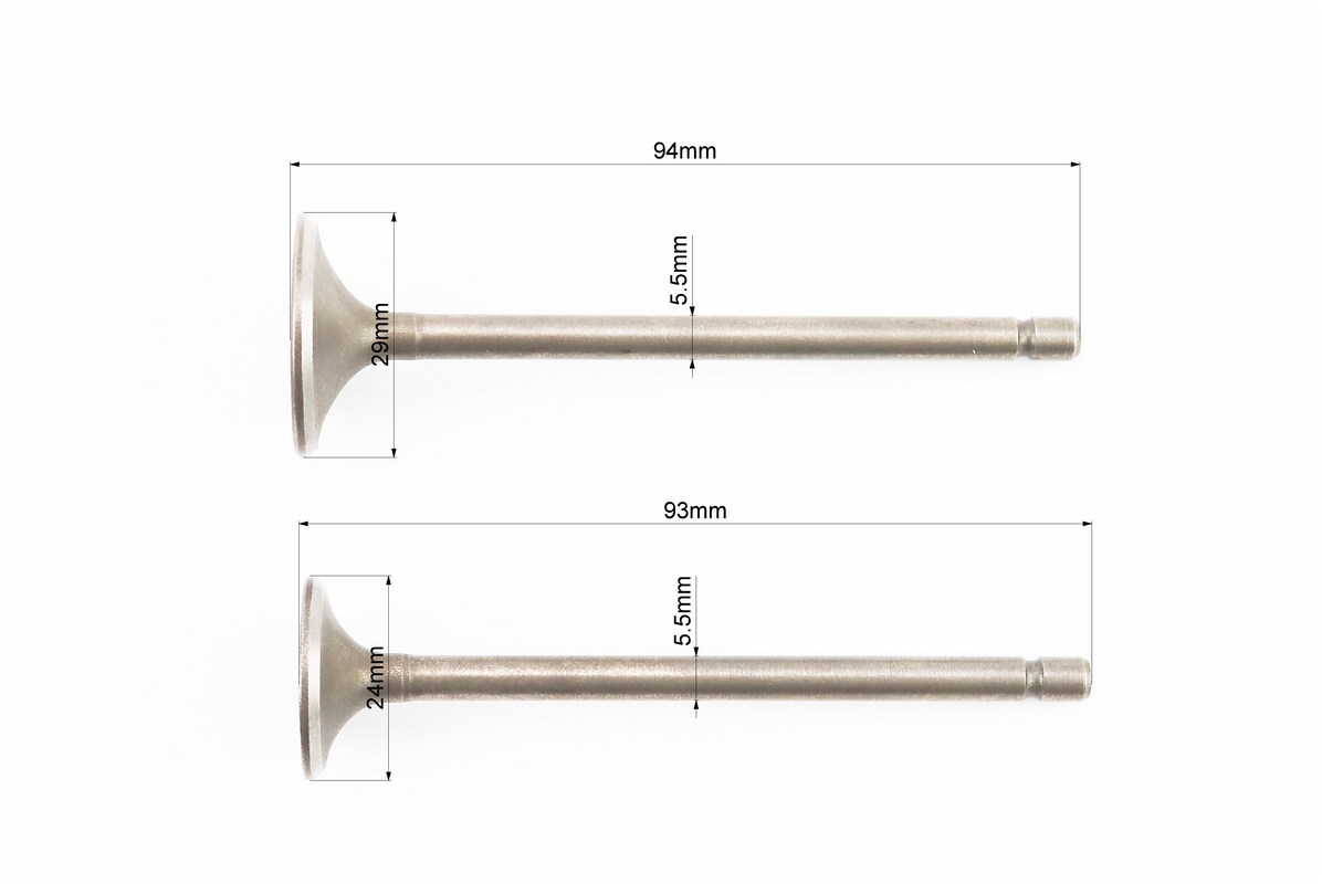 Клапана выпускной (h-93; d-24), впускной (h-94; d-29) полный к-кт 2шт 125cc