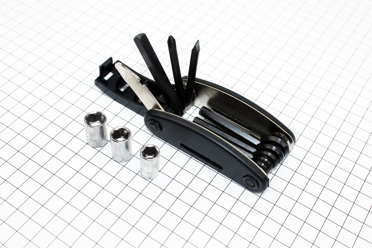 Ключ-набор 13 предметов (шестигранники 2,2.5,3,4,5,6мм, откидной спицной ключ, отвёртки прямая и фигурная, головки 8,9,10мм, лопатка), KL-9801