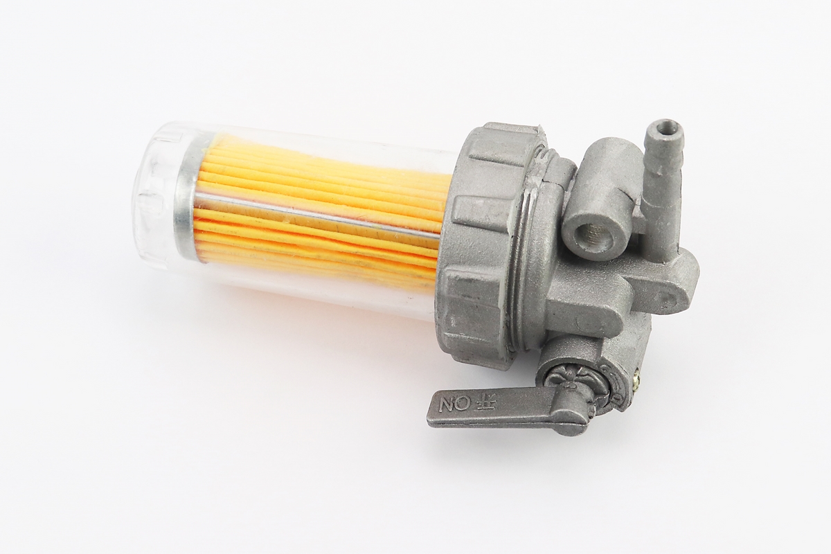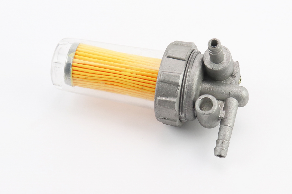 Кран топливный + фильтр в пластмассовом, прозрачном корпусе (вход/выход в сторону)