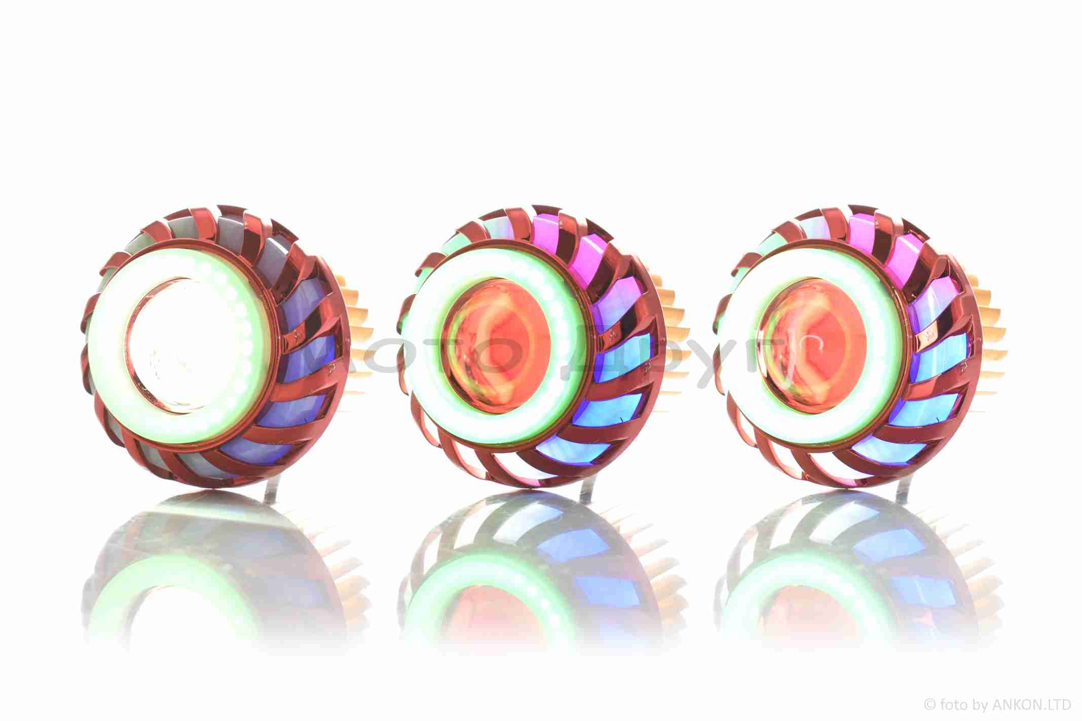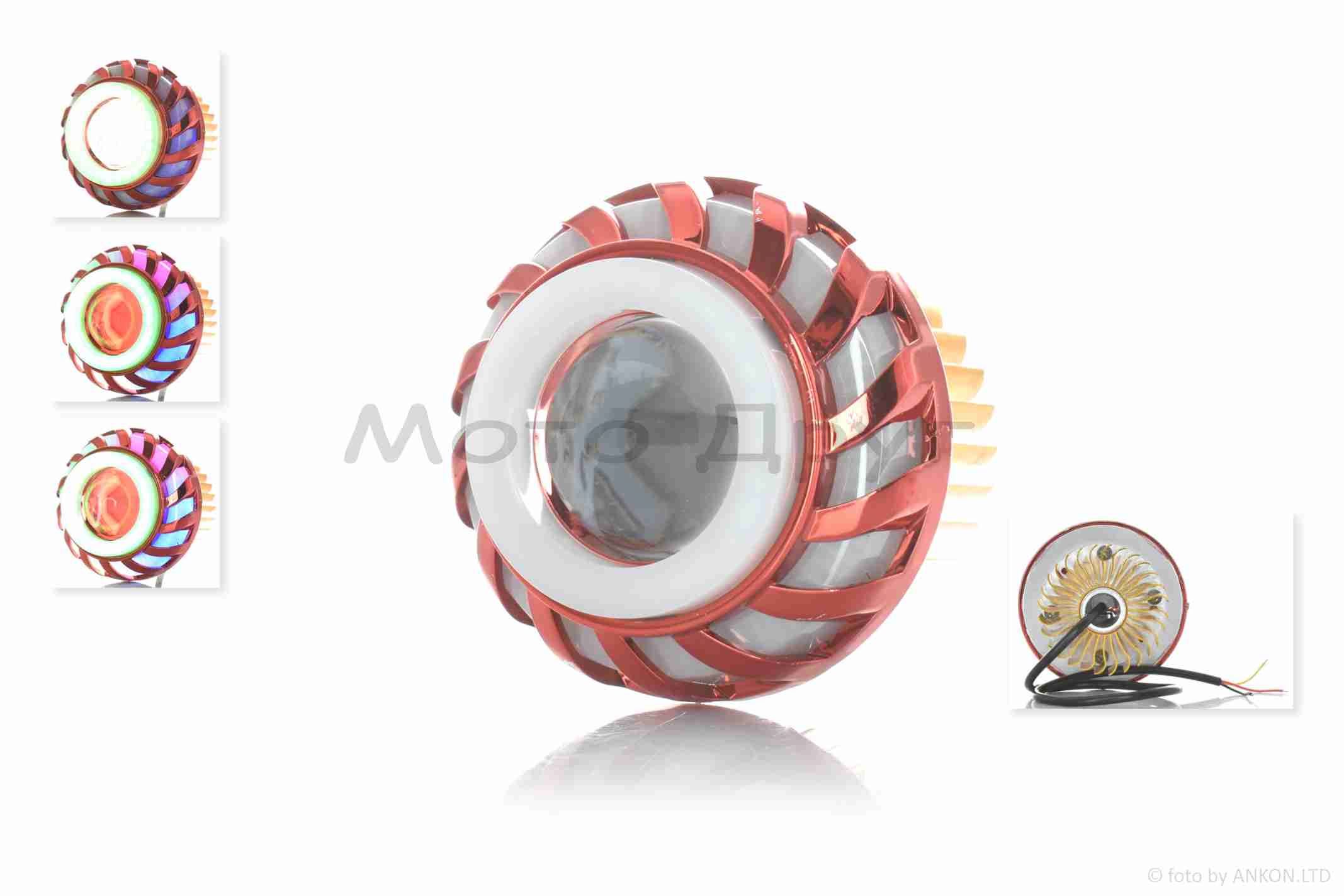 Модуль в фару диодный D71, белый свет, красный габарит, RGB кольцо, стробоскоп #18127_