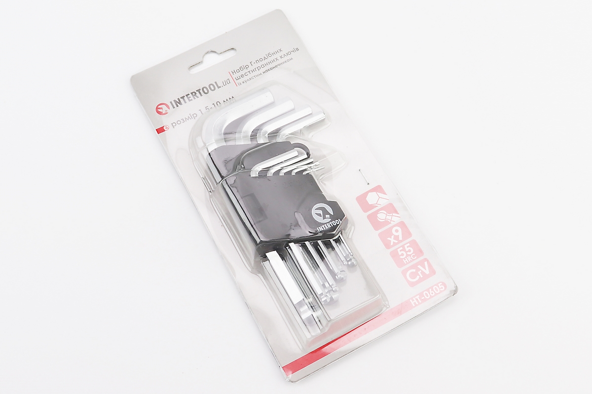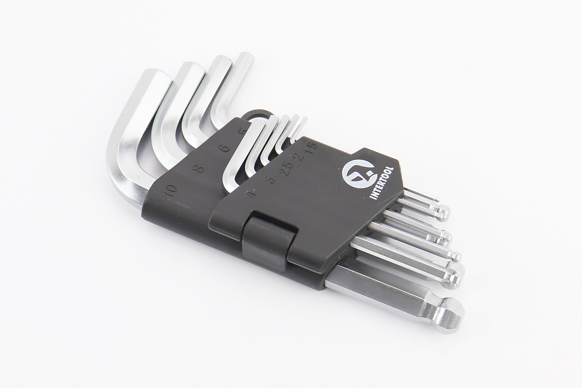 Набор Г-образных ключей с шарообразным наконечником HEX (1,5/2/2,5/3/4/5/6/8/10мм) CrV HT-0605