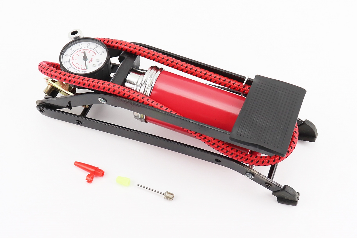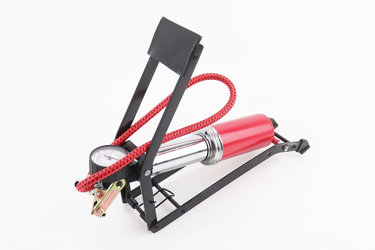 Насос ножной для шин однопоршневой 290*90мм “большой, шток толстый” красный