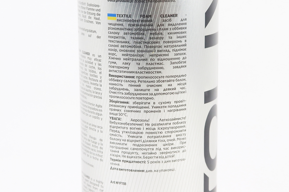 Очиститель обивки салона многофункциональный “TEXTILE FOAM CLEANER”, Аэрозоль 650ml