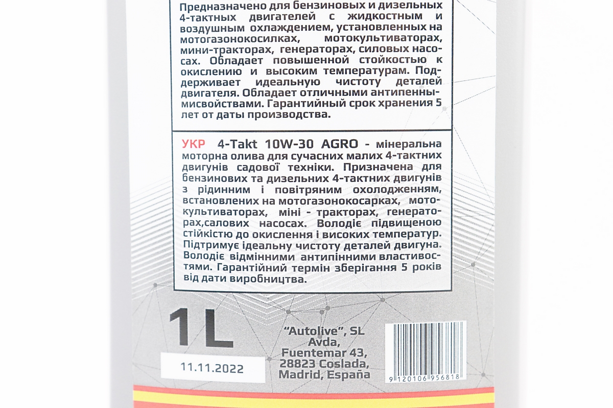 Масло 4T 10W-30 – минеральное универсальное “AGRO” 1L