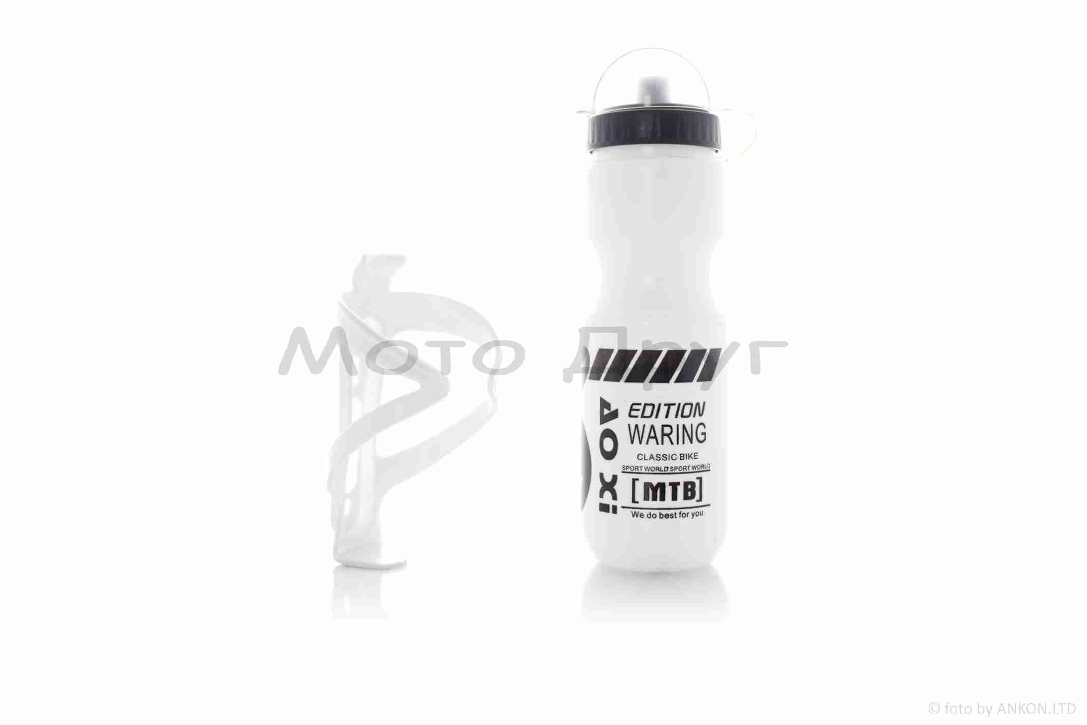 Бутылка для воды вело 600ml, белая +держатель “DISCOVERY”