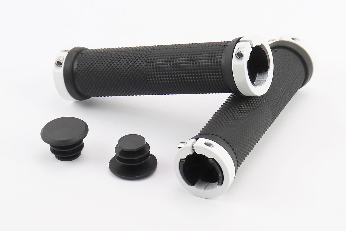 Ручки руля 130мм с зажимом Lock-On с двух сторон, чёрно-белые FL-426