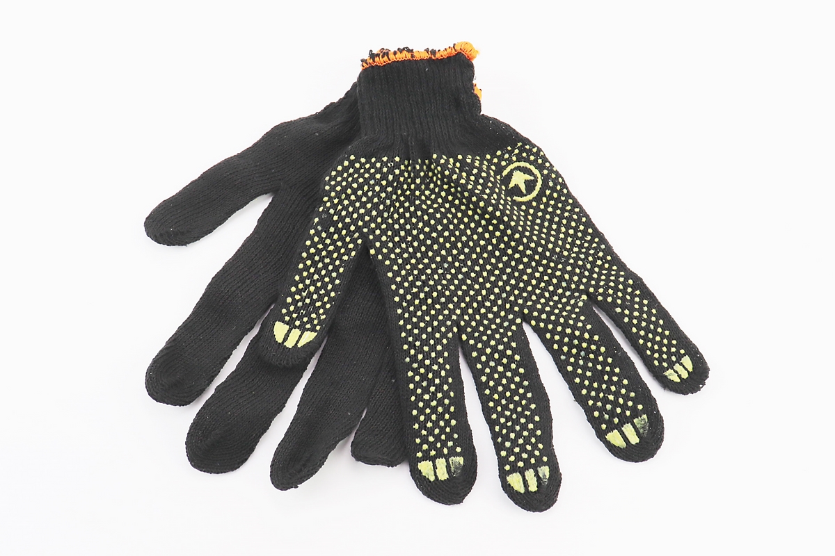 Перчатки рабочие 60% хлопок/40% полиэстер 10″, класс вязки 7, черный, желтая ПВХ точка SP-0138