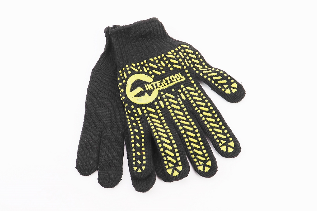 Перчатки рабочие 60% хлопок/40% полиэстер 10″, класс вязки 7, черный, желтая ПВХ точка SP-0128