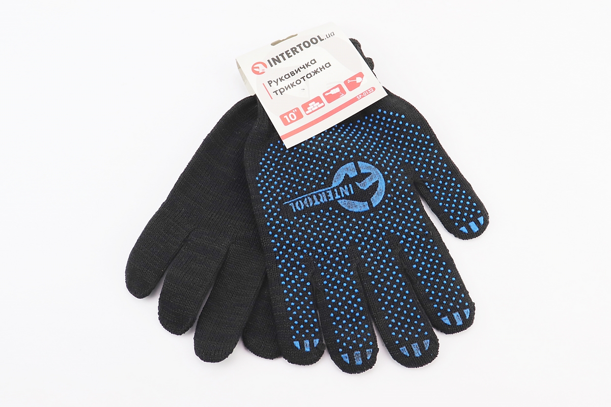 Перчатки рабочие 70% хлопок/30% полиэстер 10″, класс вязки 10, черный, синяя ПВХ точка SP-0132