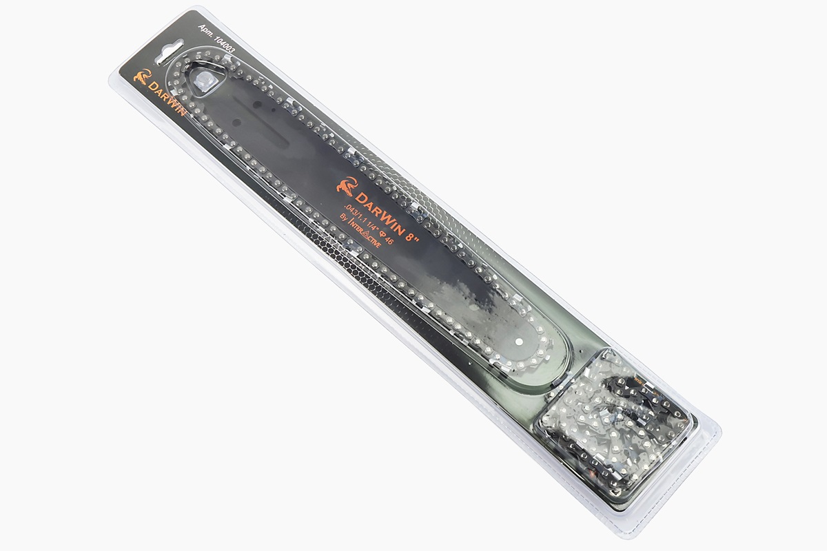 Шина 8″-1,1mm 1/4″ 46зв L-24см (подходит на аккумуляторную мини-пилу) + цепь 1/4″-1,1mm-46зв. круг. зуб-2шт, на блистере