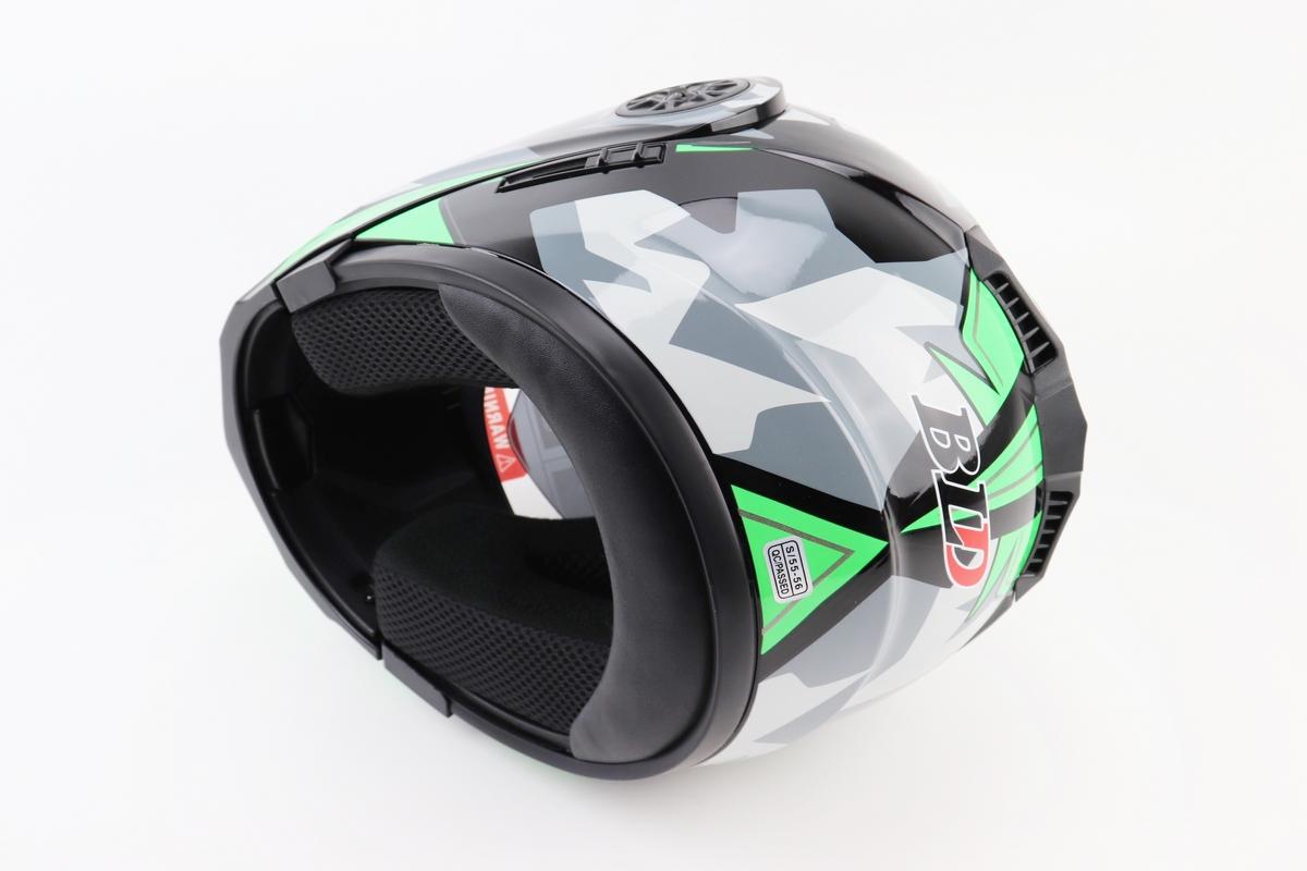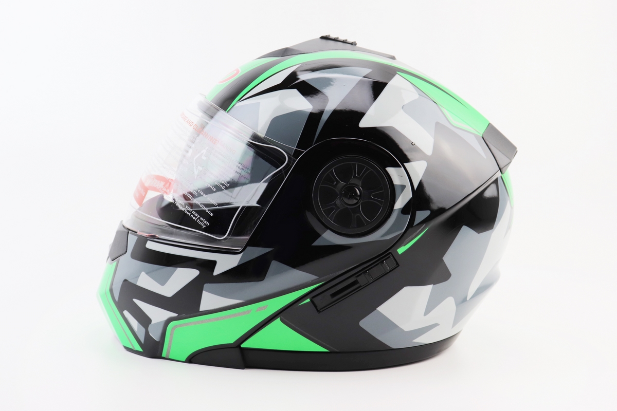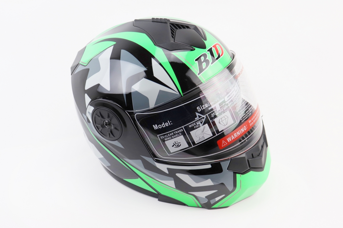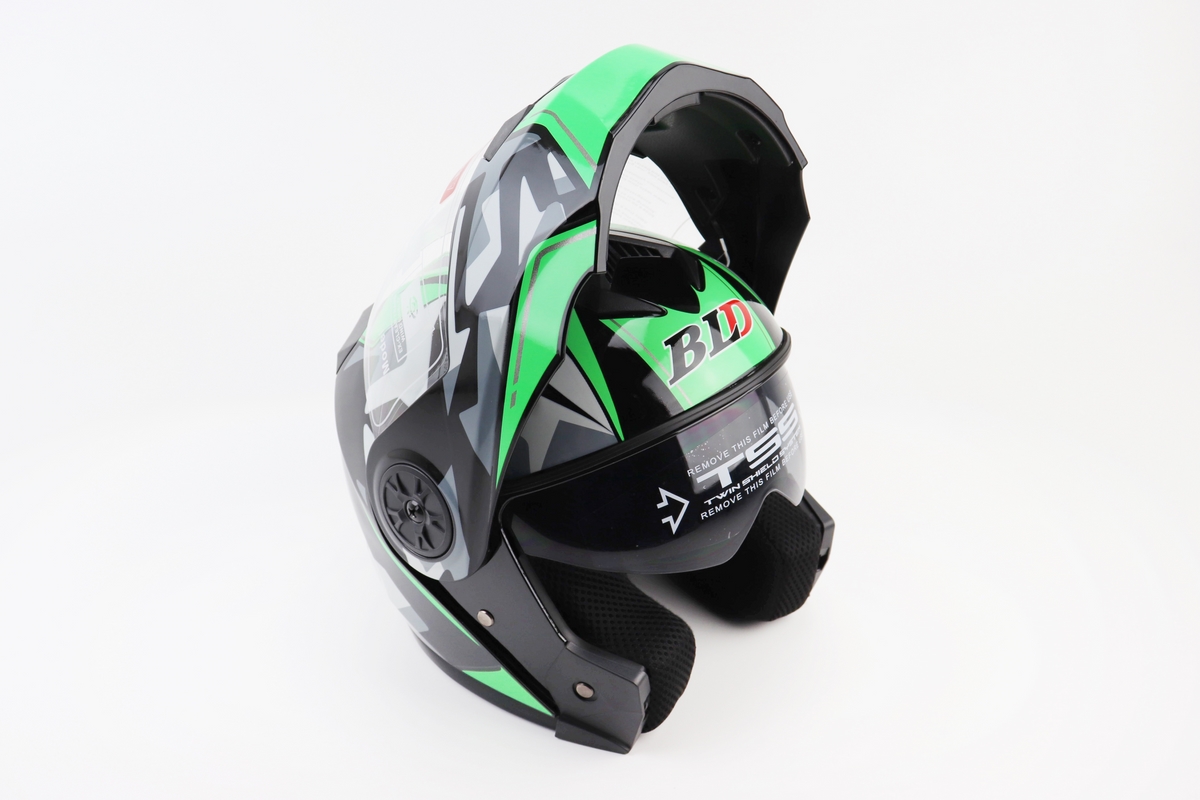 Шлем модуляр, закрытый с откидным подбородком+откидные очки BLD-159 S (55-56см), ЧЕРНО-ЗЕЛЕНЫЙ