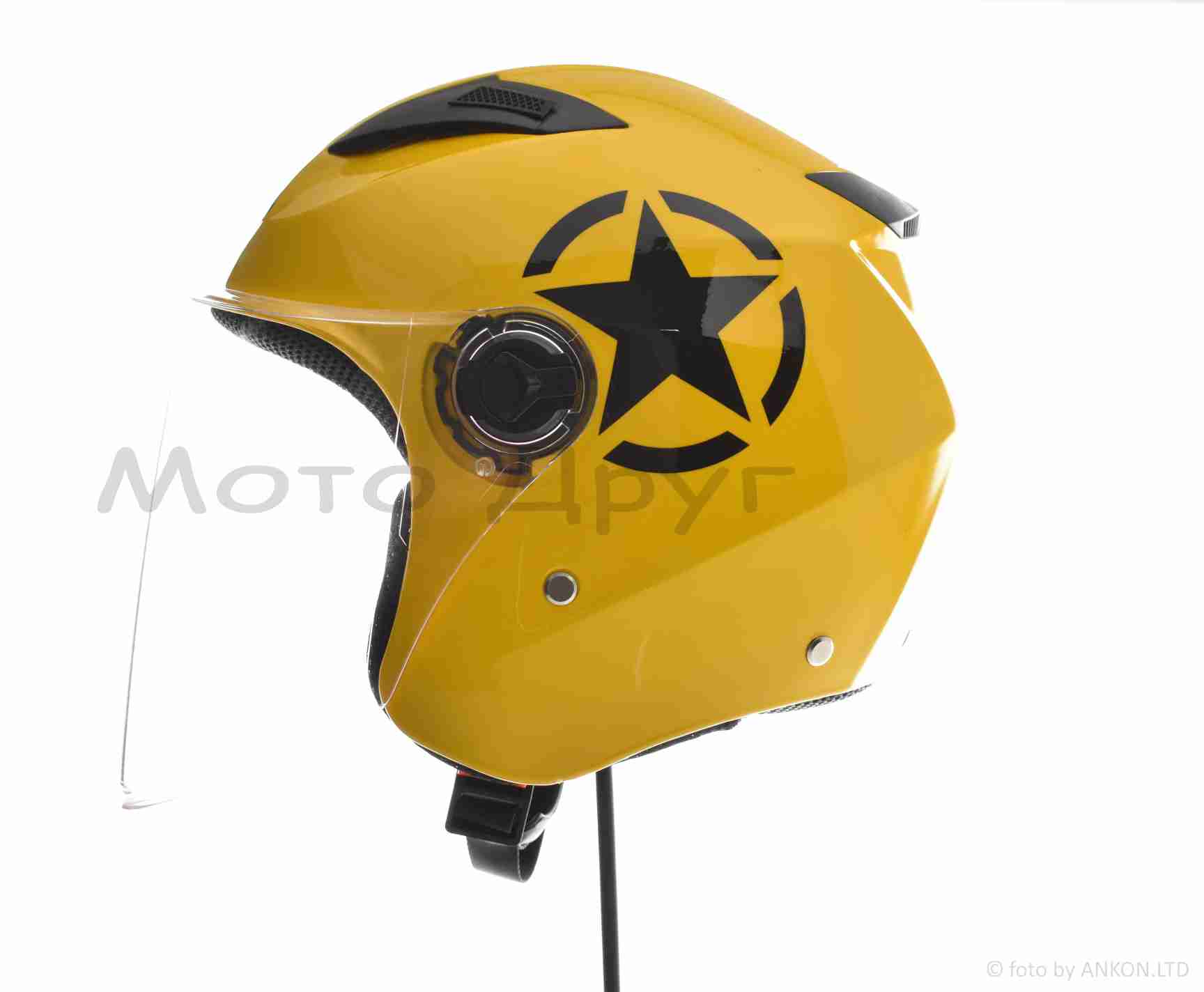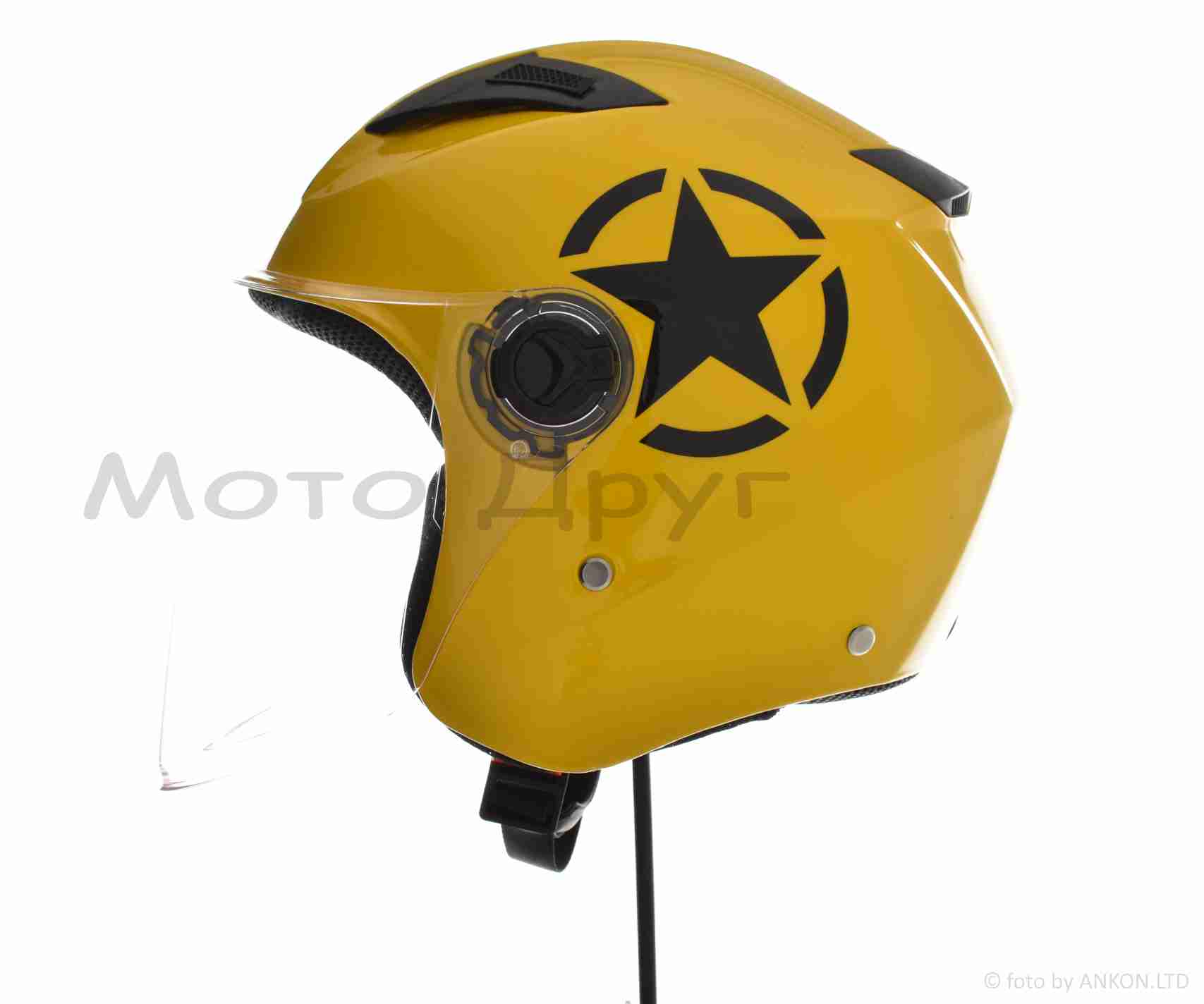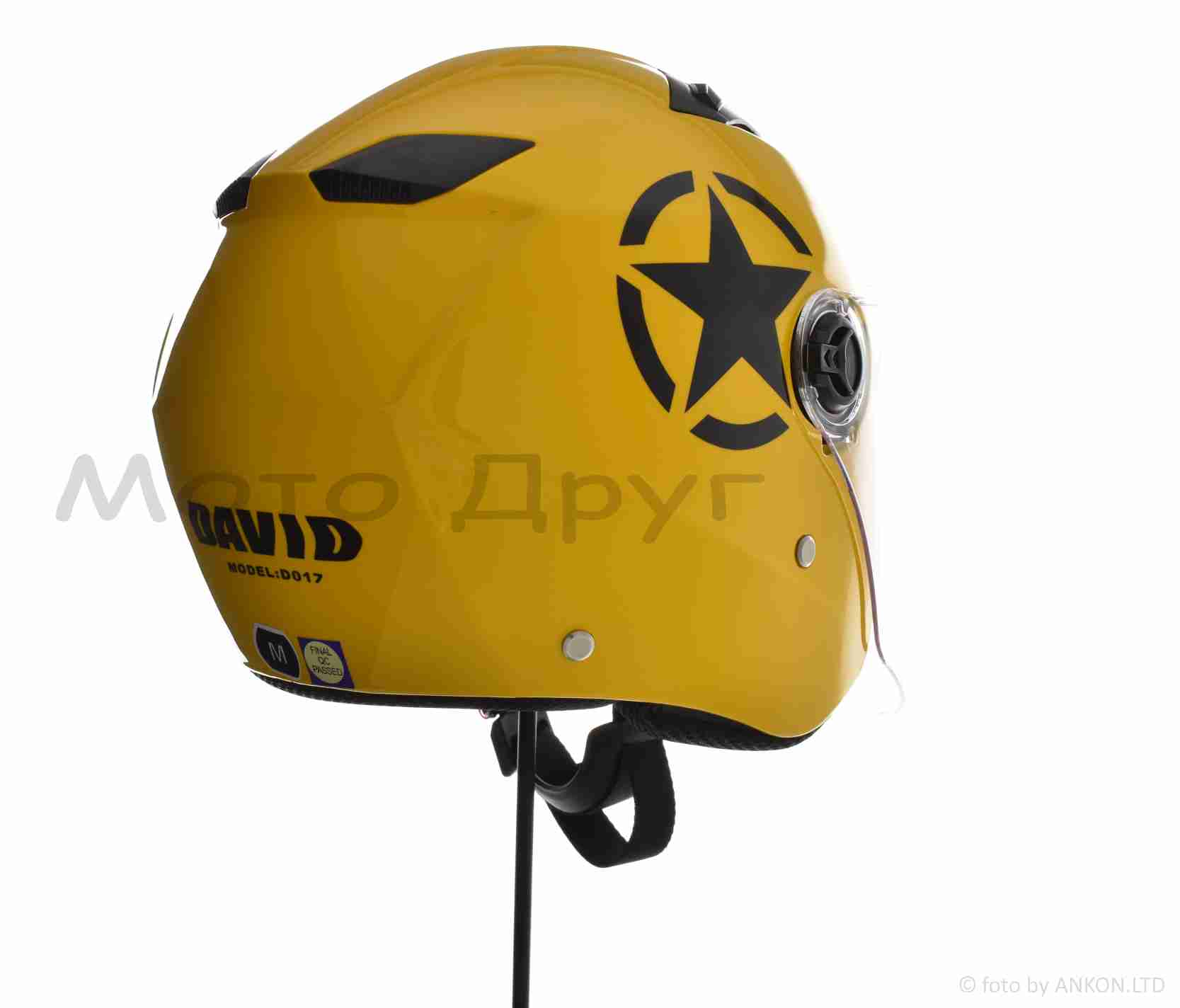 Шлем открытый “DAVID” (#D017, желтый Willys Star, L, ABS, черная звезда)