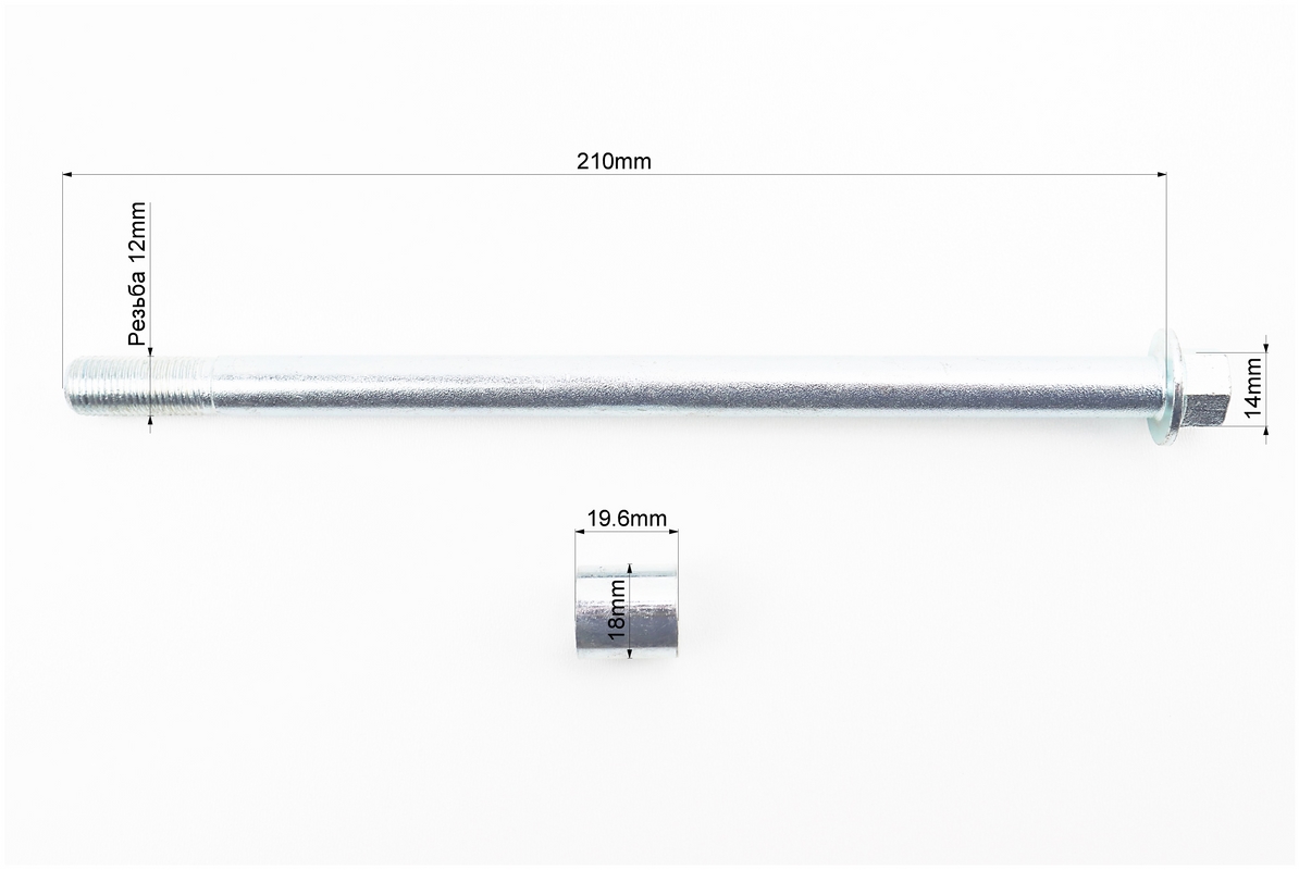 Ось колеса переднего (под алюм. диск) d12mm; L210mm + втулка, гайка