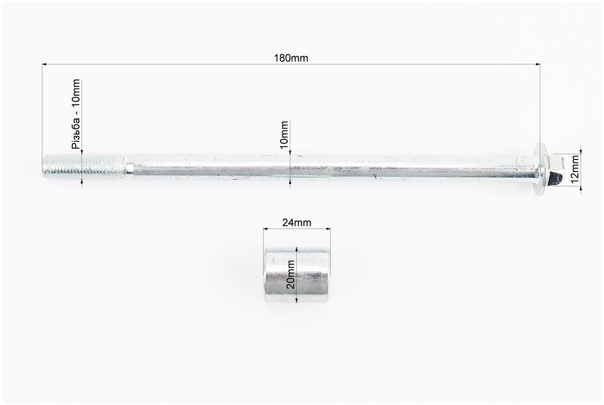 Ось переднего колеса d10mm; L185mm + втулка, гайка, тип 2