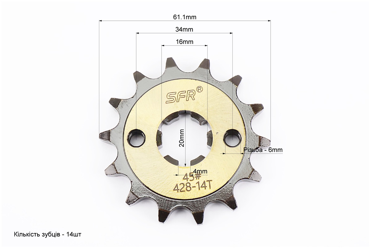 Звезда передняя 428H-14T – Yamaha YBR125 “каленая”